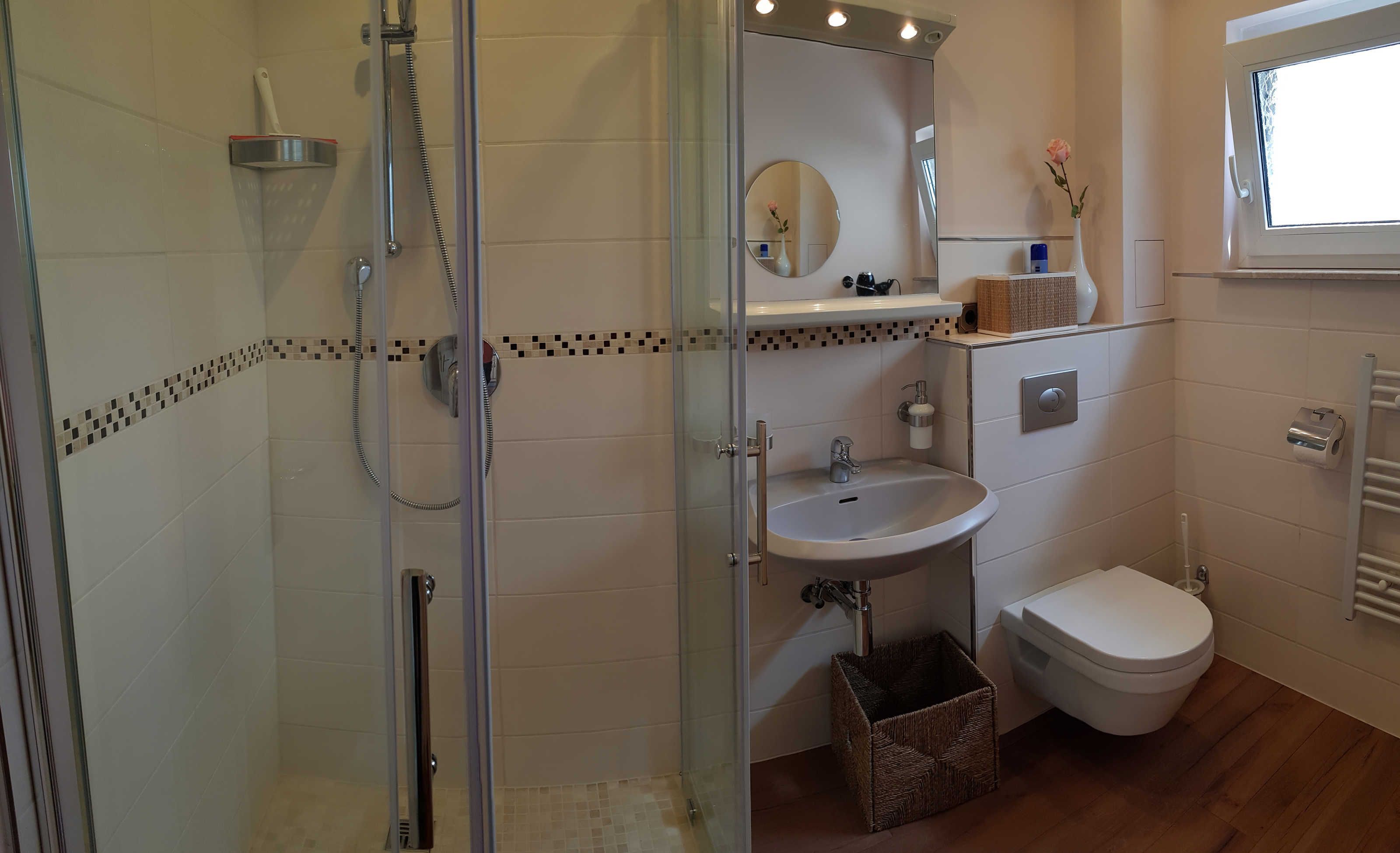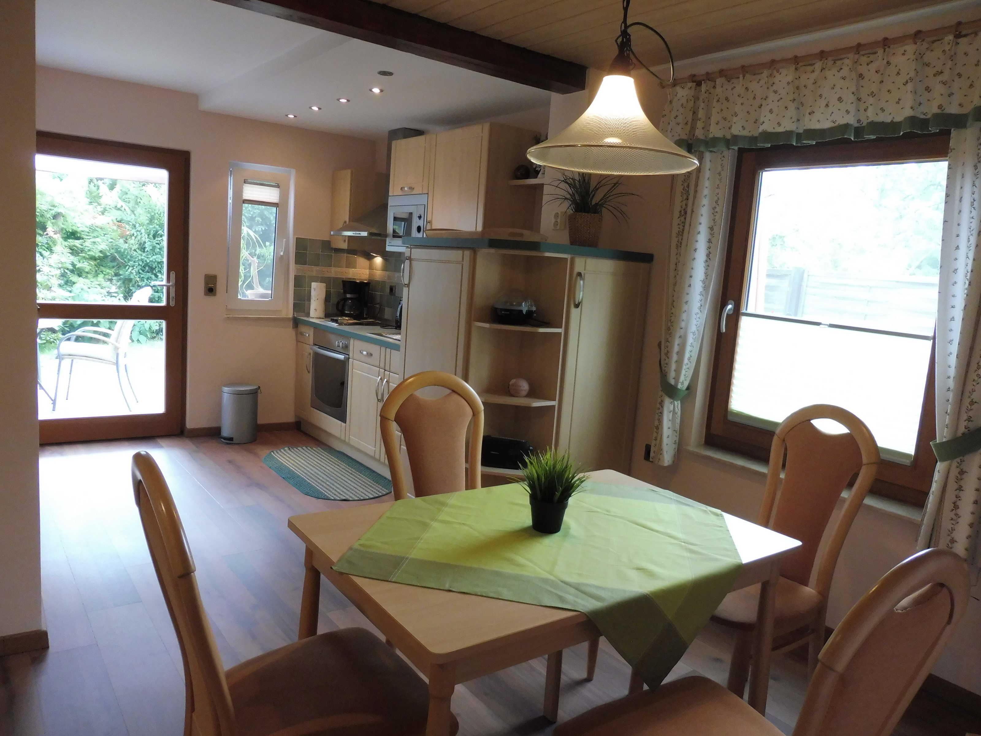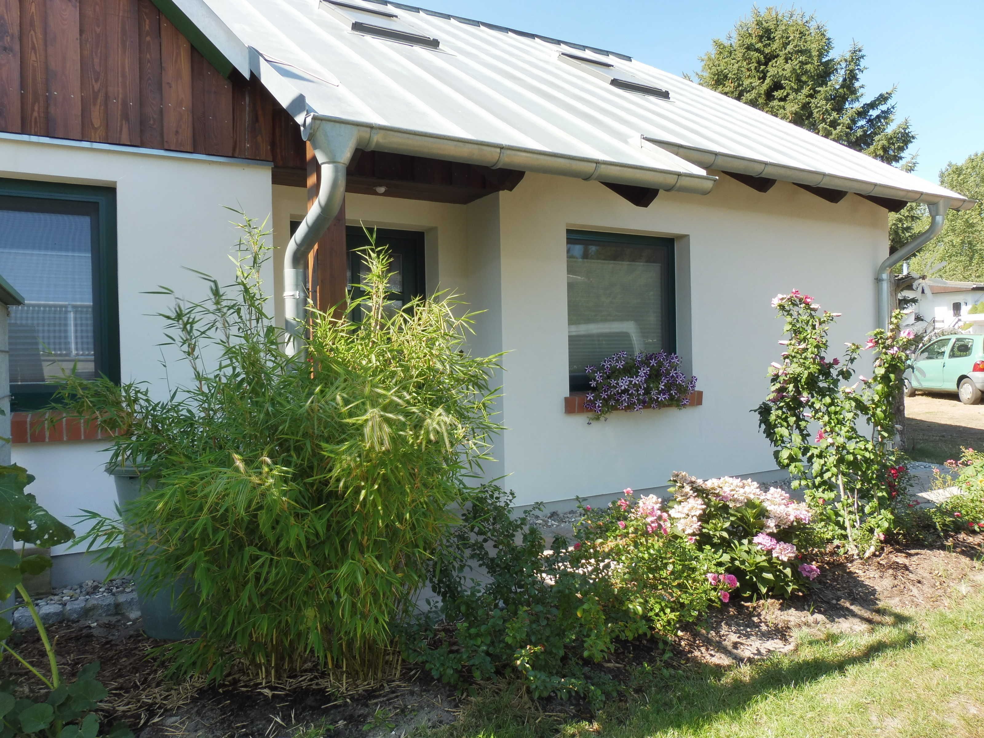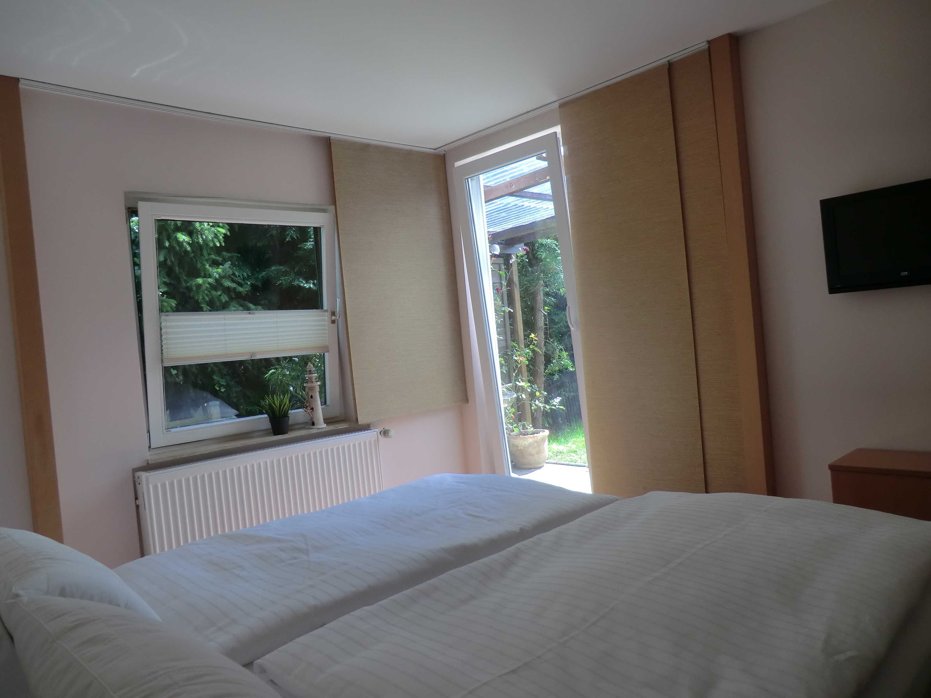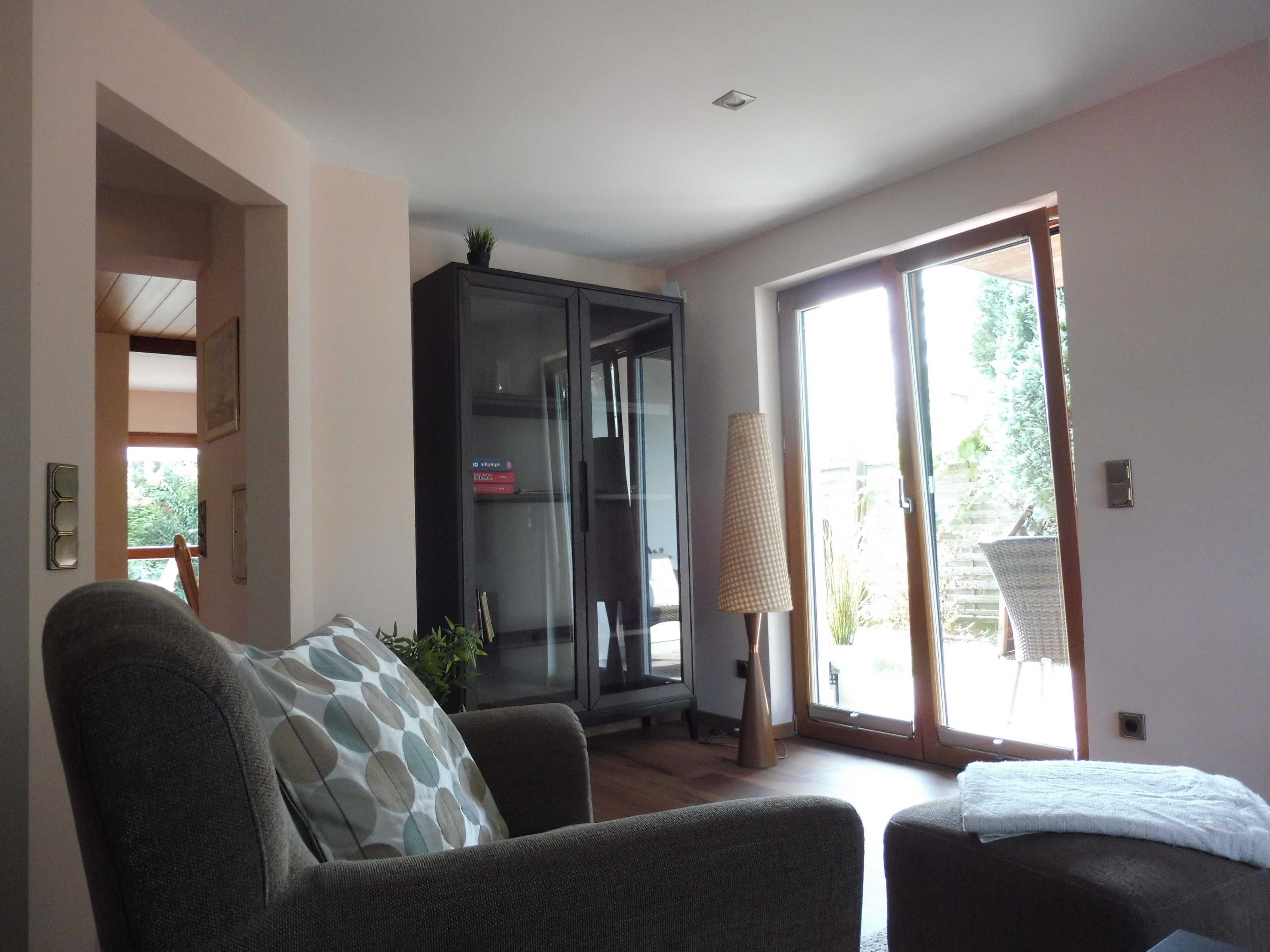 Die ruhige Lage und das gemütliche Ambiente der Ferienwohnung bieten viel Raum für Erholung. Auf 96m² befinden sich liebevoll eingerichtete Zimmer für max. 4 Personen. Es erwarten Sie 2 komfortable Schlafzimmer mit TV, 2 moderne Tageslichtbäder mit Dusche, WC und Fön, 1 offener Wohnraum mit Küchenzeile und Essbereich sowie 1 gemütliches Wohnzimmer mit Radio und TV. In der gesamten Wohnung können Sie freies Wlan nutzen. Die 2 überdachten Terrassen sind mit den Gartenliegen und –möbeln eine Ruhe-Oase zum Genießen. Die Nutzung der Gartensauna ist nicht inclusiv und erfolgt nach Absprache mit dem Gast.  Für PKW und Fahrräder sind kostenfreie Stellplätze vorhanden.