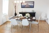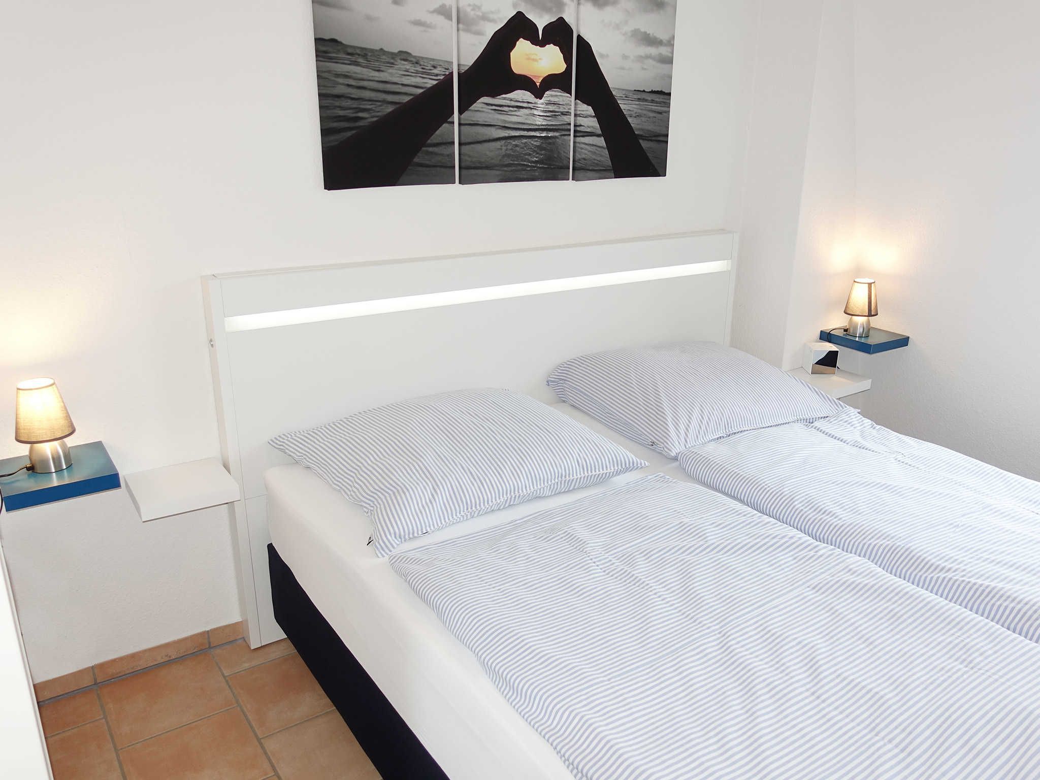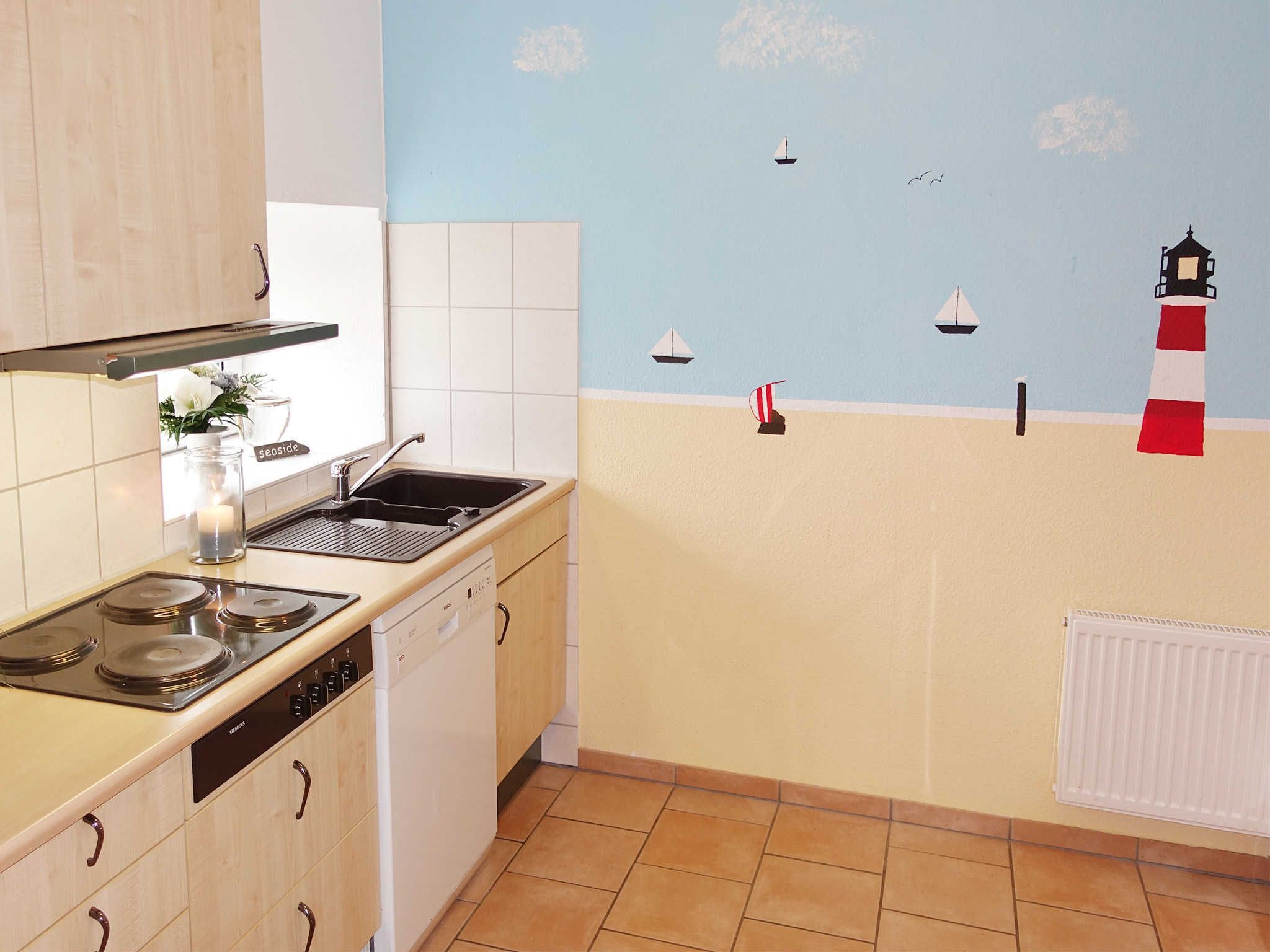 Die Ferienwohnung Familienkoje im Obergeschoss bietet mit ihrem hellen maritim eingerichteten Wohnraum und ihren drei gemütlichen Schlafzimmern Platz fürbis zu 7 Personen. Das Elternschlafzimmer ist mit einem hochwertigen Boxspringbett ausgestattet, die andern beiden Schlafzimmer besitzen zwei bzw. drei einzelne Betten. Alle Betten sind für Ihren erholsamen Schlaf mit hochwertigen Matratzen und Lattenrosten ausgestattet. Nach Herzenslust Kochen ist in der gut ausgestatteten separaten Küche sehr leicht möglich, den Abwasch erledigt die Geschirrspülmaschine. Den sieben Bewohnern stehen zwei Duschbäder zur Verfügung.