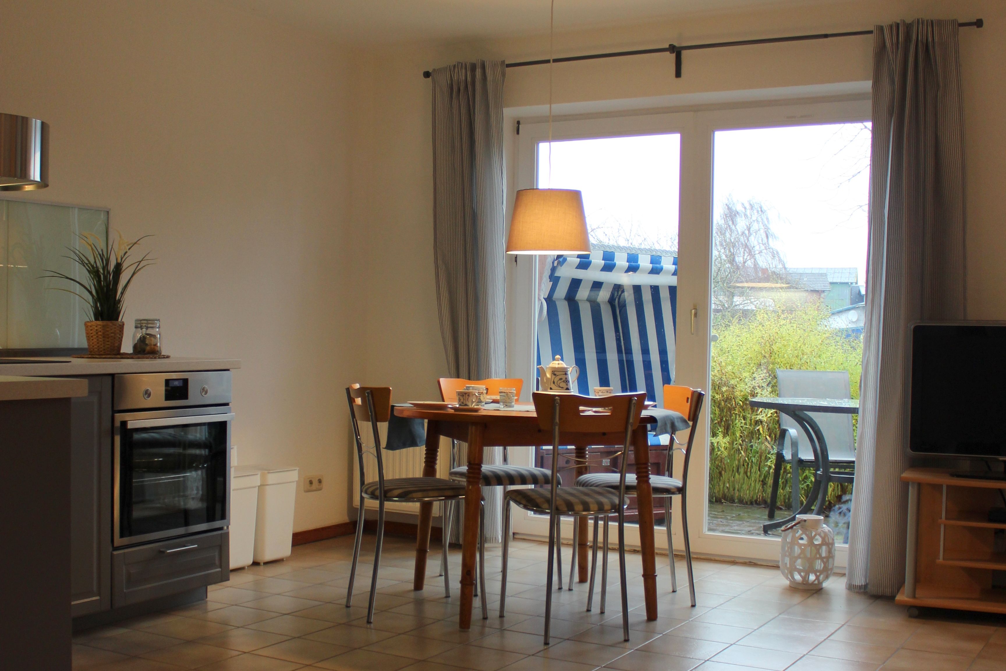 Die ebenerdige Ferienwohnung Steuerbord bietet mit ihrem modern eingerichteten lichtdurchfluteten Wohnraum und ihrem gemütlichem Schlafzimmer Platz für 2 Personen. Das großzügige Doppelbett ist für Ihren erholsamen Schlaf mit hochwertigen Matratzen und Lattenrosten ausgestattet.