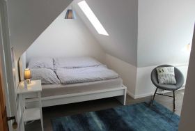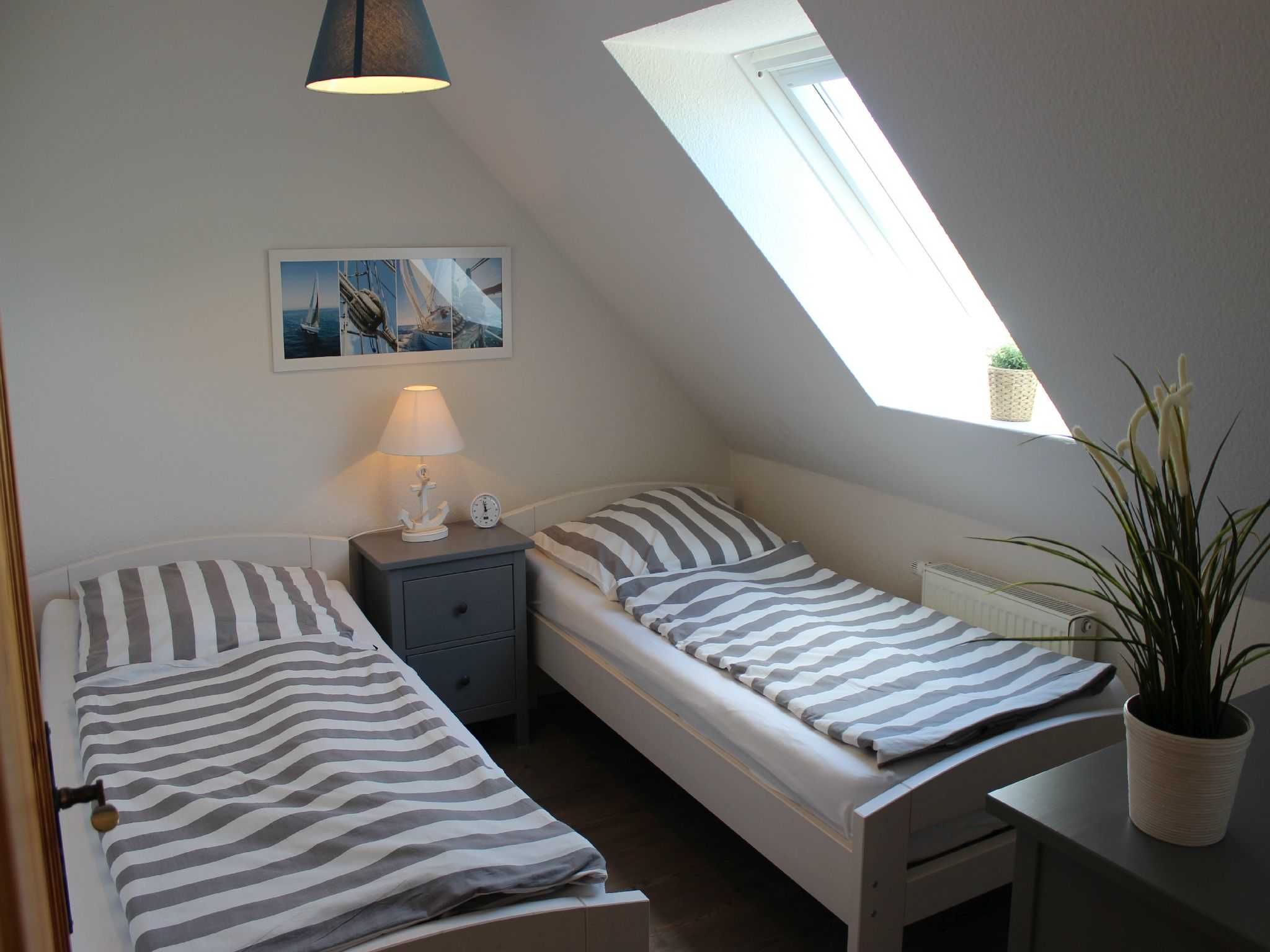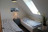 Die Ferienwohnung Lotsenausblick im Obergeschoss bietet mit ihrem gemütlich eingerichteten Wohnraum und ihren vier gemütlichen Schlafzimmern Platz für bis zu 9 Personen. Es gibt zwei Schlafzimmer mit jeweils einem Doppelbett sowie ein Schlafzimmer mit einem Etagenbett und ein Schlafraum mit drei Einzelbetten. Alle Betten sind für Ihren erholsamen Schlaf mit hochwertigen Matratzen und Lattenrosten ausgestattet.