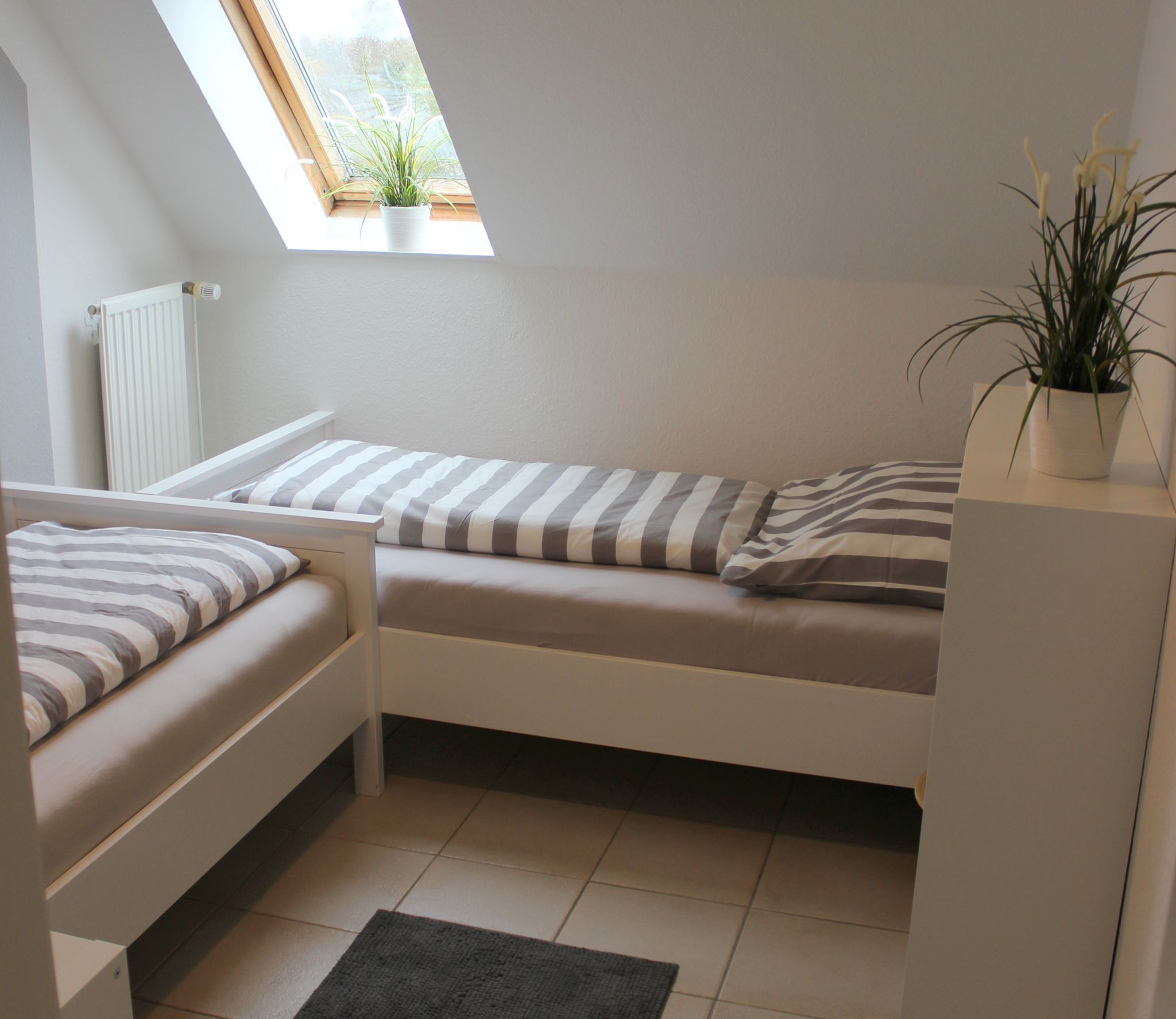 Wohnraum und ihren beiden gemütlichen Schlafzimmern Platz für bis zu 4 Personen. Das Elternschlafzimmer besitzt ein großzügiges Doppelbett. Im zweiten Zimmer befinden sich zwei Einzelbetten. Alle Betten sind für Ihren erholsamen Schlaf mit hochwertigen Matratzen und Lattenrosten ausgestattet.