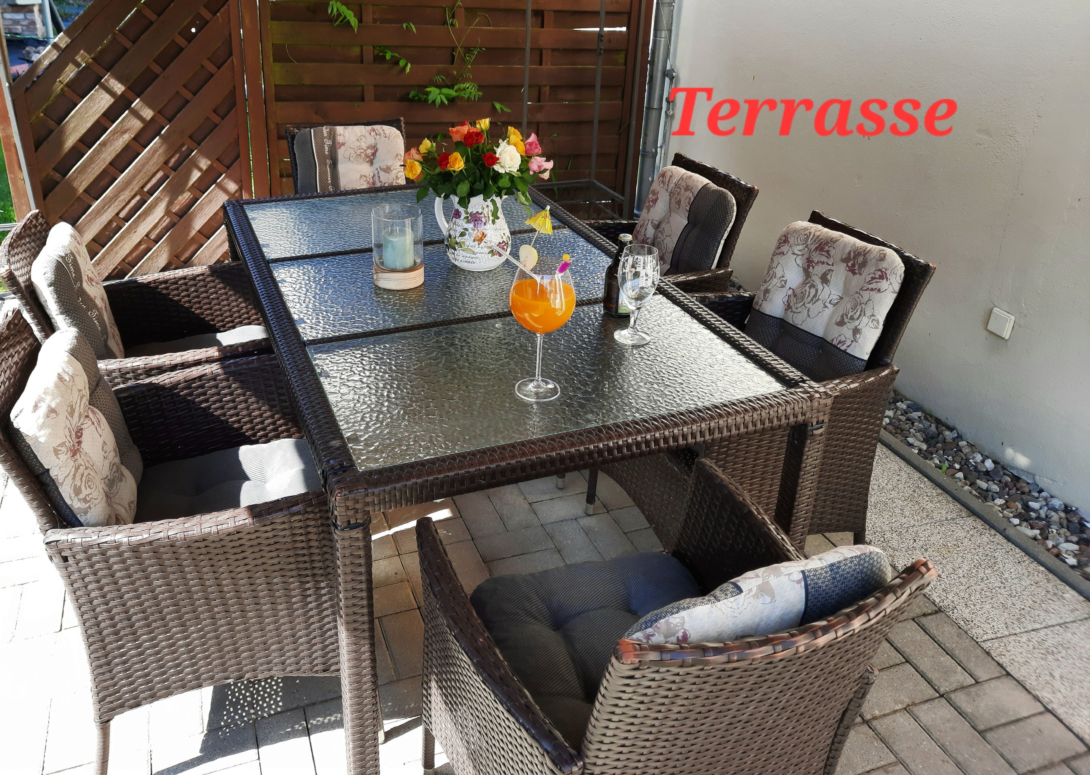• Terasse mit Gartenmöbeln und Grill laden zu entspannten Stunden ein