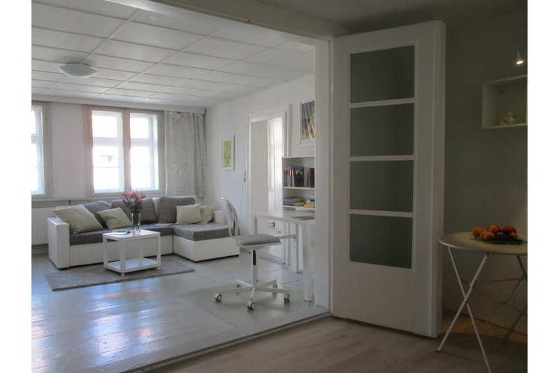 Gemütliche Wohnung mit Blick auf den Markt. 45 m2 für zwei Personen, ganzjährig und gern auch länger mietbar.