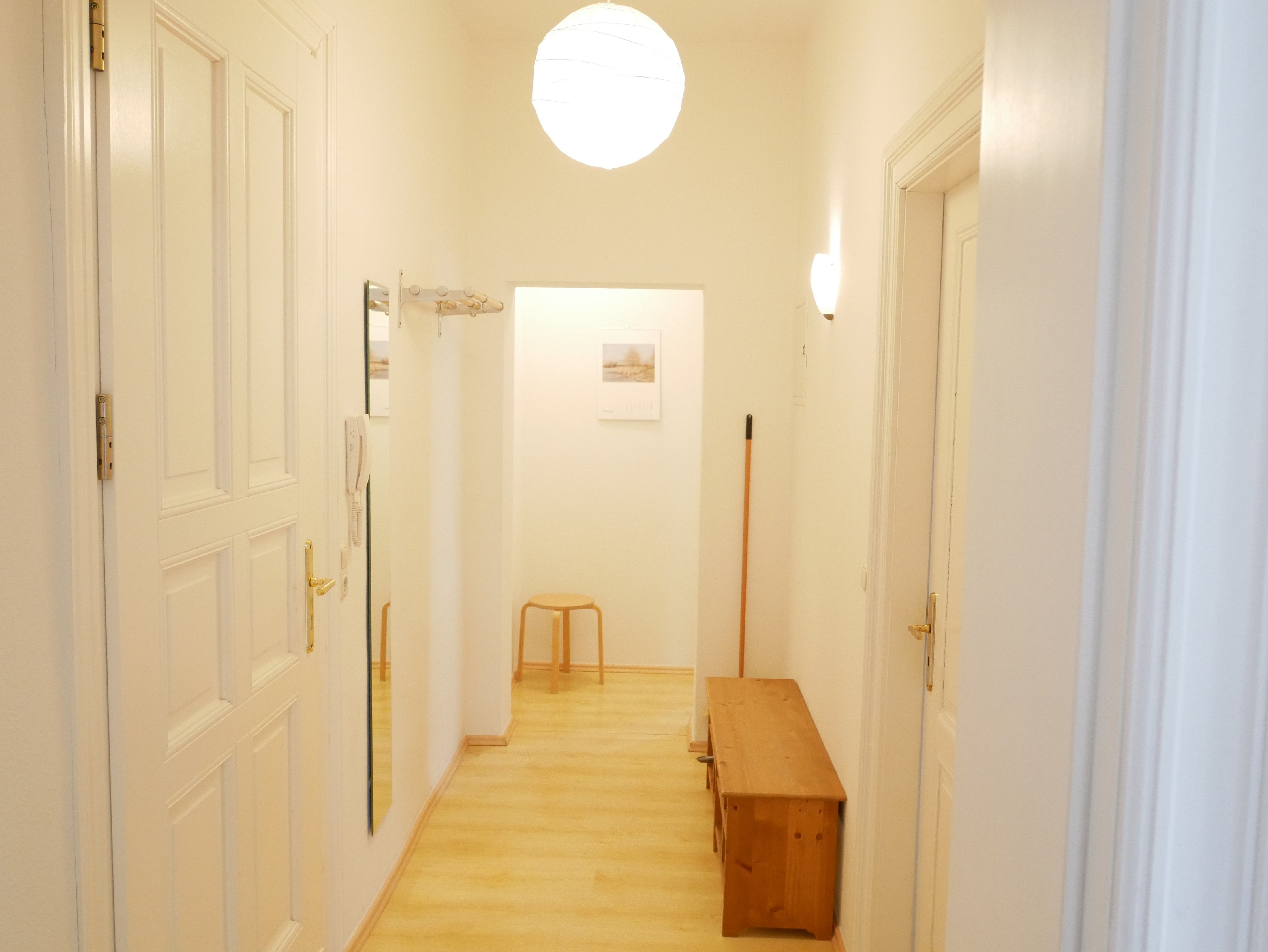 Die gesamte Wohnung ist mit hellem Laminat ausgestattet.