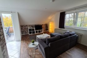 Sie wohnen auf ca. 90qm in der gut ausgestatteten Ferienwohnung. Diese ist zu jeder Jahreszeit hell, geräumig und gemütlich eingerichtet. Der nach Süden ausgerichtete Balkon lädt mit seinen Sitzgelegenheiten zum Verweilen ein. Die Ferienwohnung liegt in der ersten Etage und bietet Platz für 4 Personen und ein Kleinkind bis 3 Jahren (Kinderbett).Bei uns sind Kinder und Hunde willkommen. Auf Anfrage bieten wir Ihnen einen Transferservice gegen eine Gebühr an.