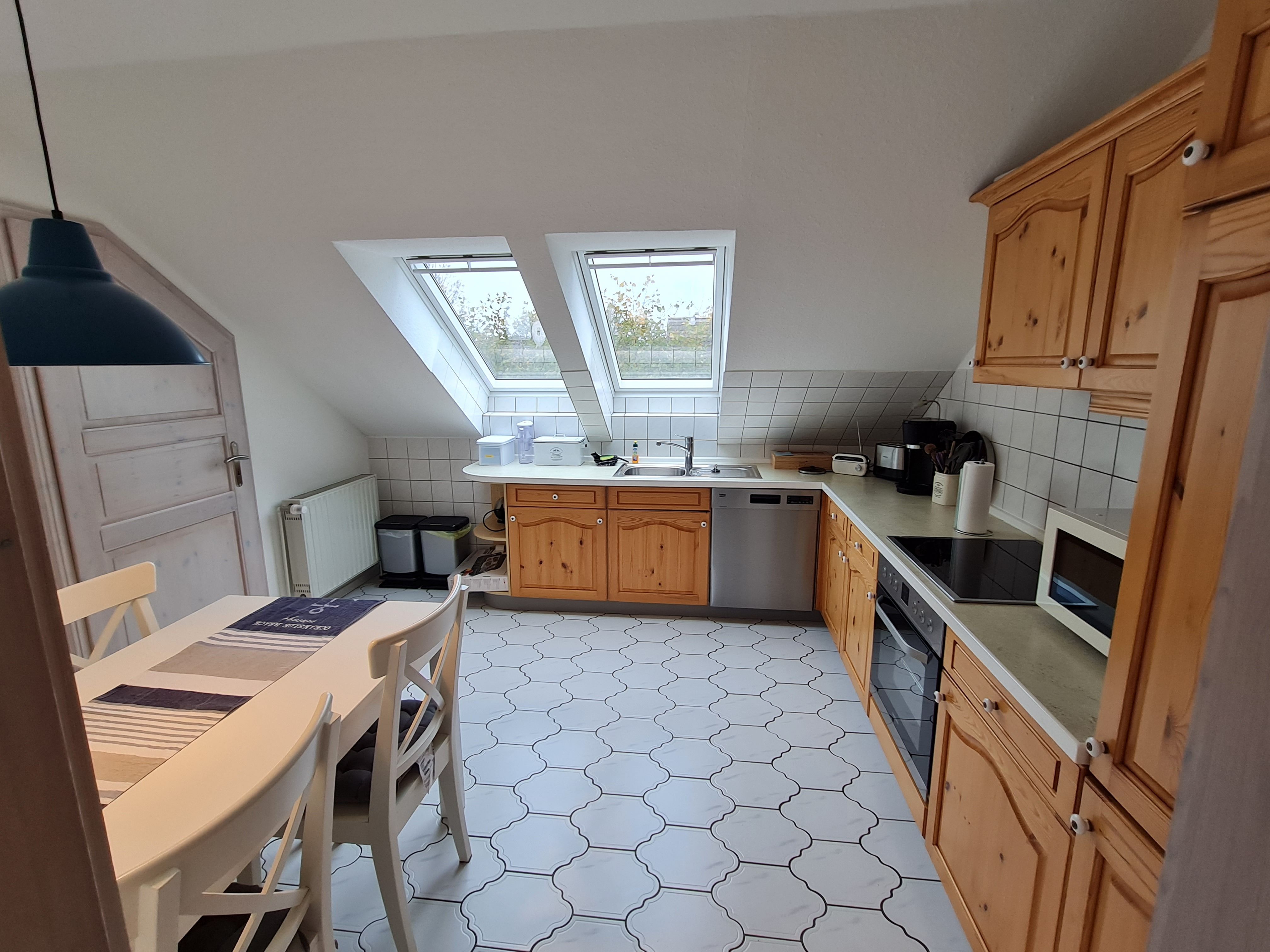 - vollausgestattete Küche (Mikrowelle, Geschirrspüler, kleiner Gefrierschrank) mit gemütlicher Sitzecke.