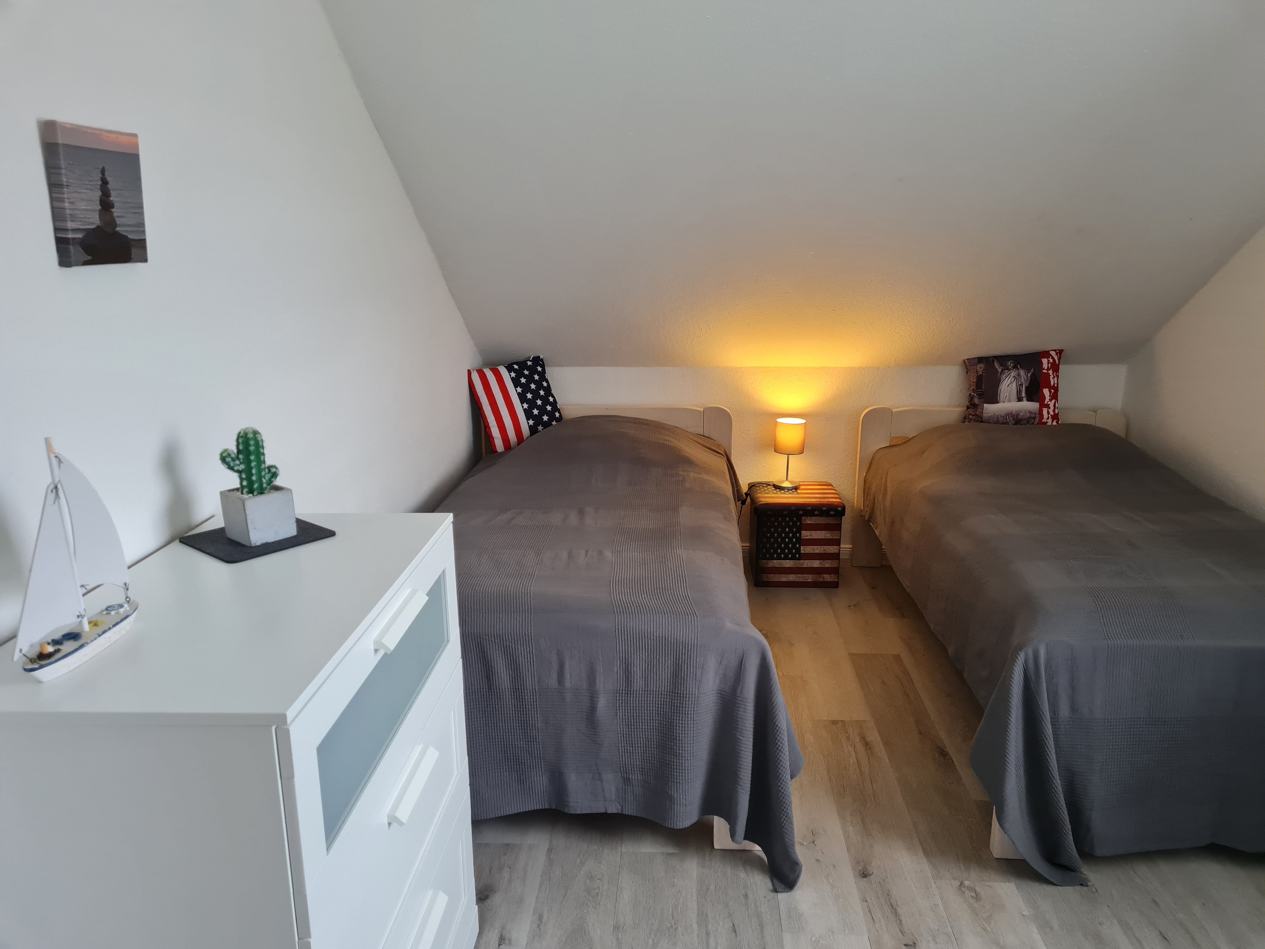 - 1 Schlafraum mit 2 Einzelbetten; Bettwäsche zubuchbar