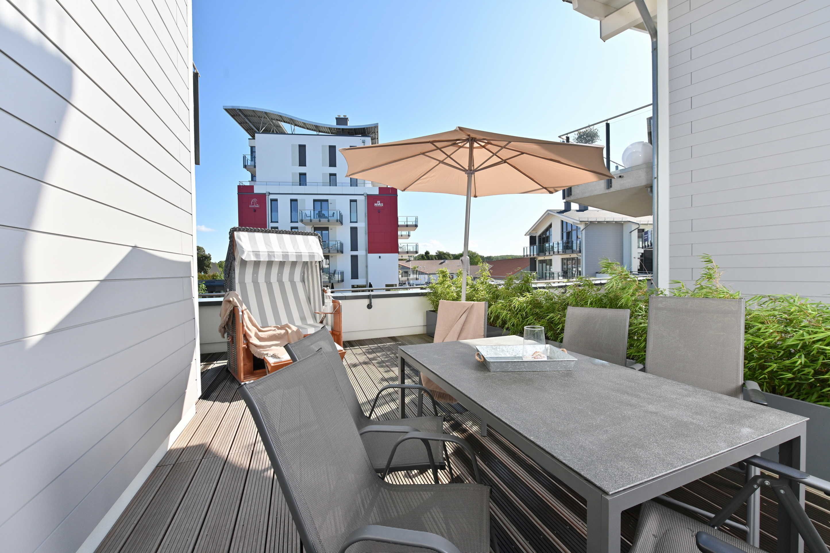 Dachterrasse und Balkon mit Strandkorb und Gartenmöbeln (69qm)