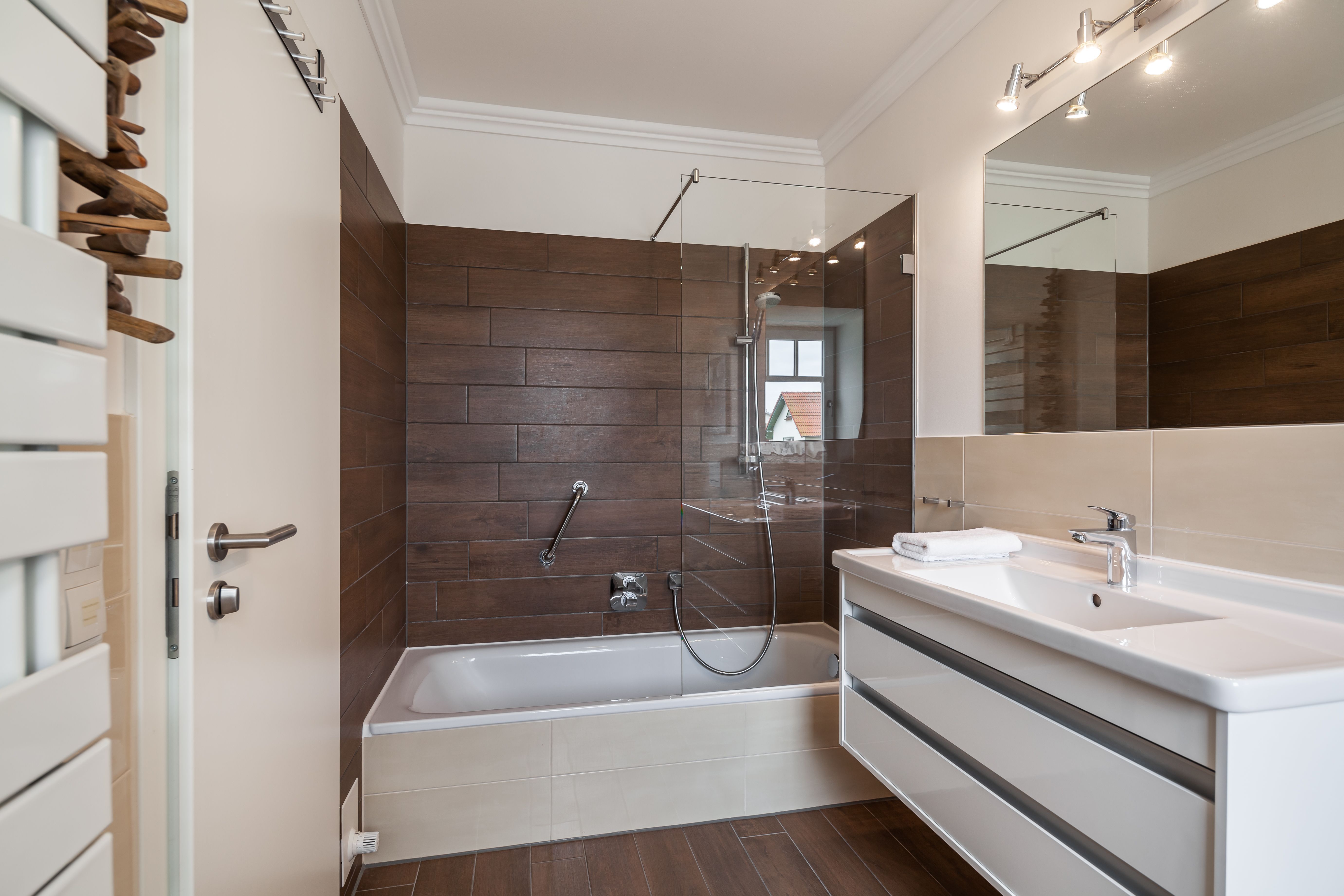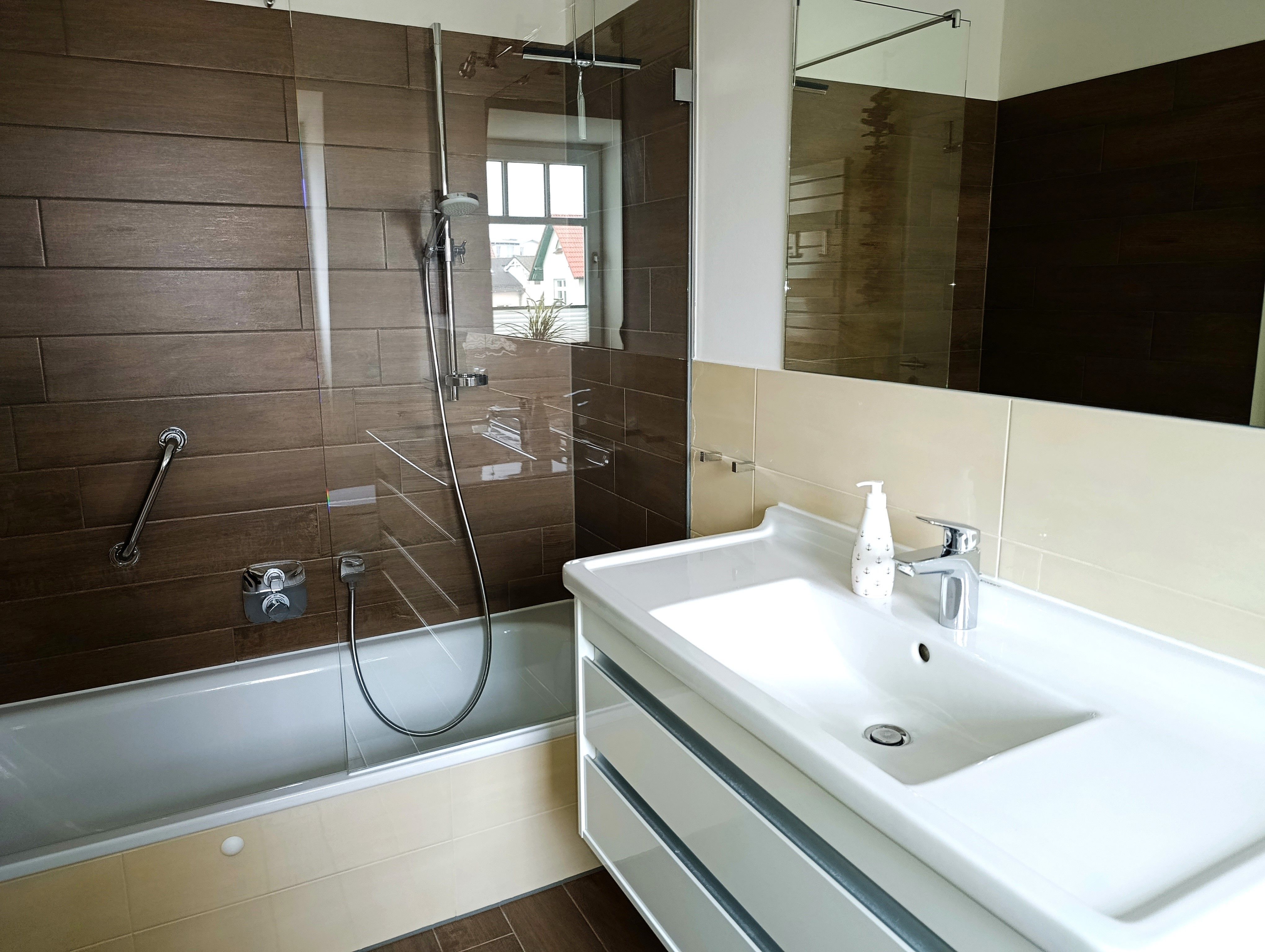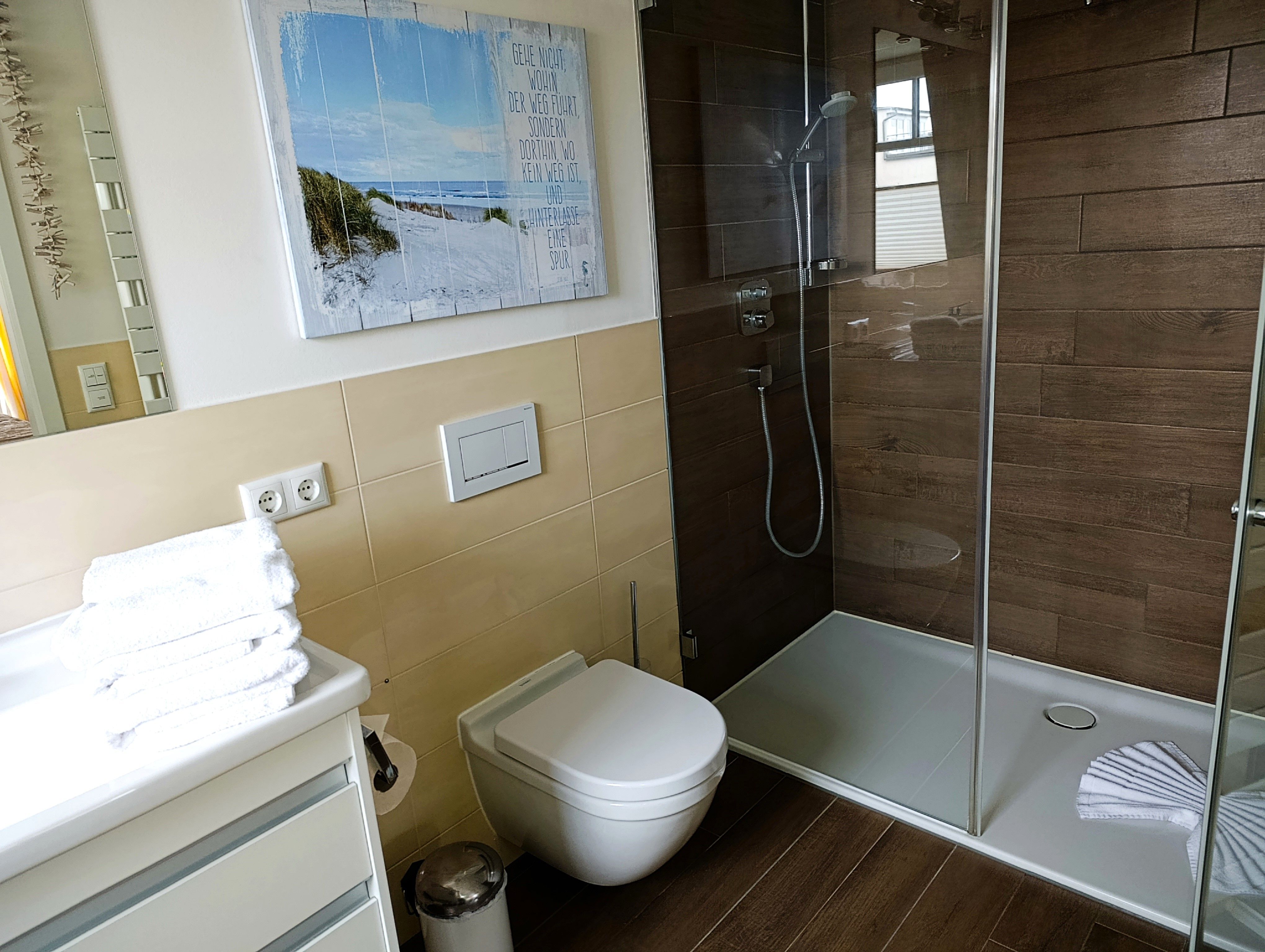 I. Badezimmer mit ebenerdiger Dusche und WC