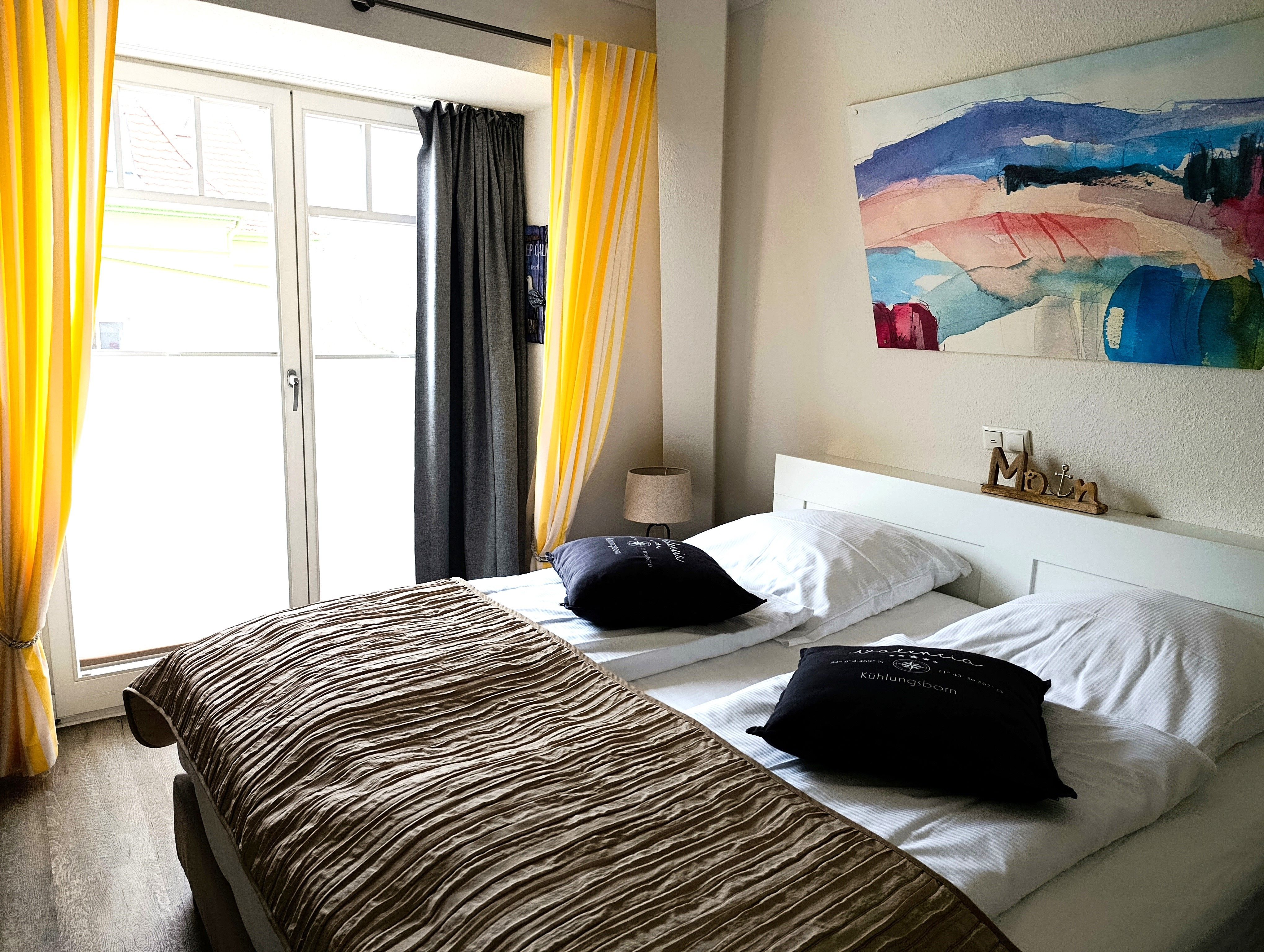 1. Schlafzimmer mit Doppelbett und Kleiderschrank