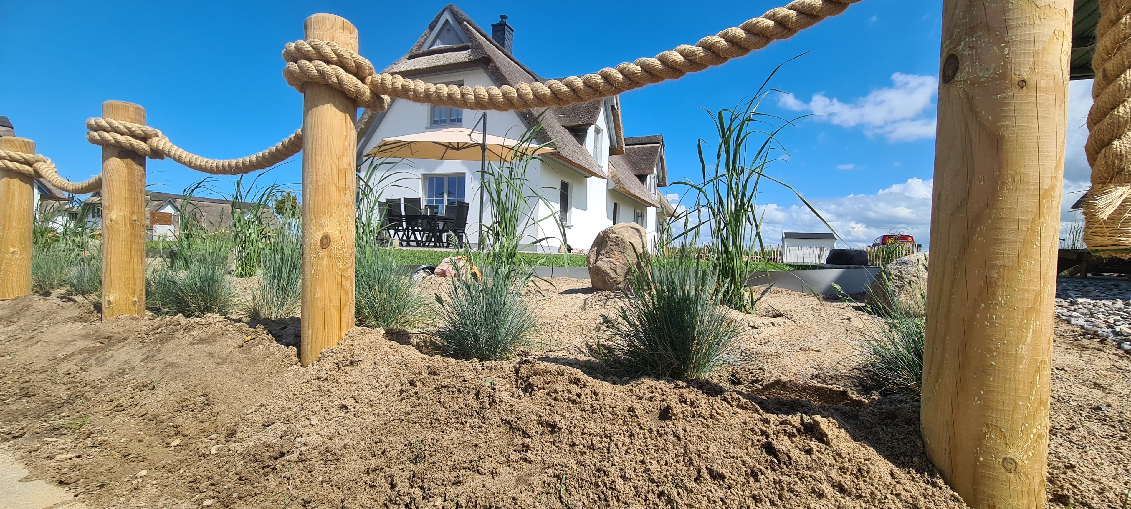 Ein charmantes Reetdachhaus unweit vom Ostseesandstrand freut sich auf große und kleine Gäste.