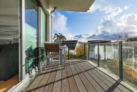 Zur Wohnung gehört außerdem ein Tiefgaragenplatz. Im Haus steht eine große Gemeinschaftssauna mit Relaxbereich und Schwalldusche zur Verfügung.
