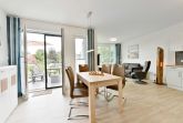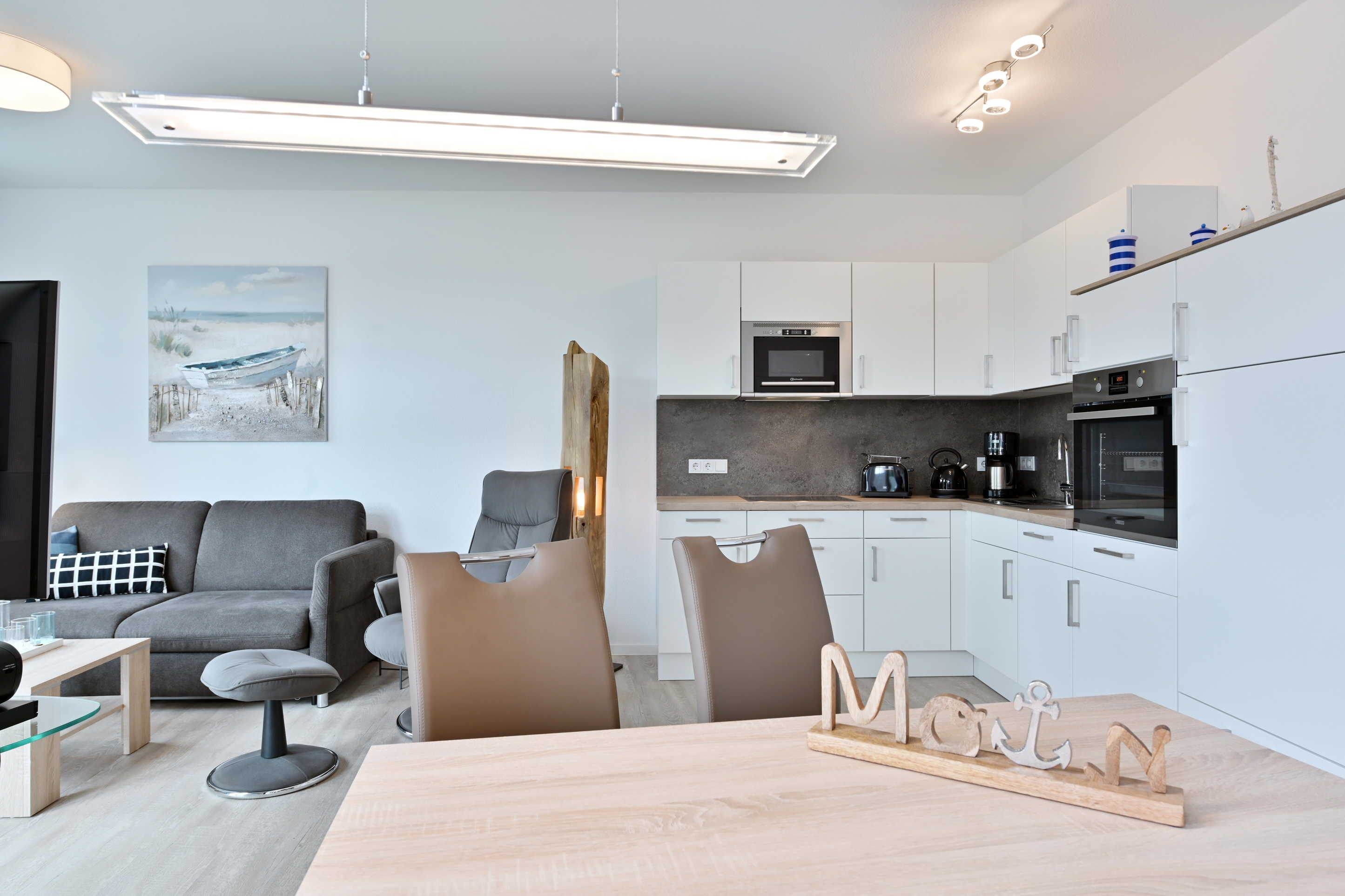 Die Wohnung bietet auf 62qm einen gemütlichen Wohnraum mit Schlafcouch und integrierter Küche, einen Schlafraum mit Doppelbett und ein Bad mit Dusche. Die Terrasse ist aus dem Wohn- wie auch aus dem Schlafbereich begehbar.