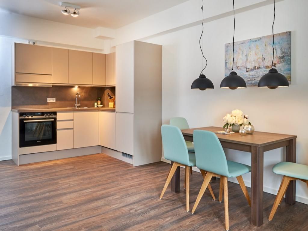 Dieses stilvoll eingerichtete 2-Zimmer-Appartement befindet sich in der 1. Etage und bietet mit seinen 48 m² Platz für 4 Personen. Das Appartement hat einen exklusiven eingerichteten Wohn- und Essbereich mit Fernseher und einer voll ausgestatteten integrierten Küche (Geschirrspüler, Mikrowelle, Backofen, Kühlschrank, Kaffeemaschine, Wasserkocher u.v.m.). Das elegante Schlafzimmer ist mit einem Doppelbett und einem Kleiderschrank eingerichtet. Des Weiteren gibt es ein modernes Duschbad. WLAN steht Ihnen kostenfrei zur Verfügung. Bei Anreise ist ein Bett für 2 Personen bezogen und Handtücher liegen für Sie bereit.In unmittelbarer Nähe sind öffentliche Parkplätze vorhanden.