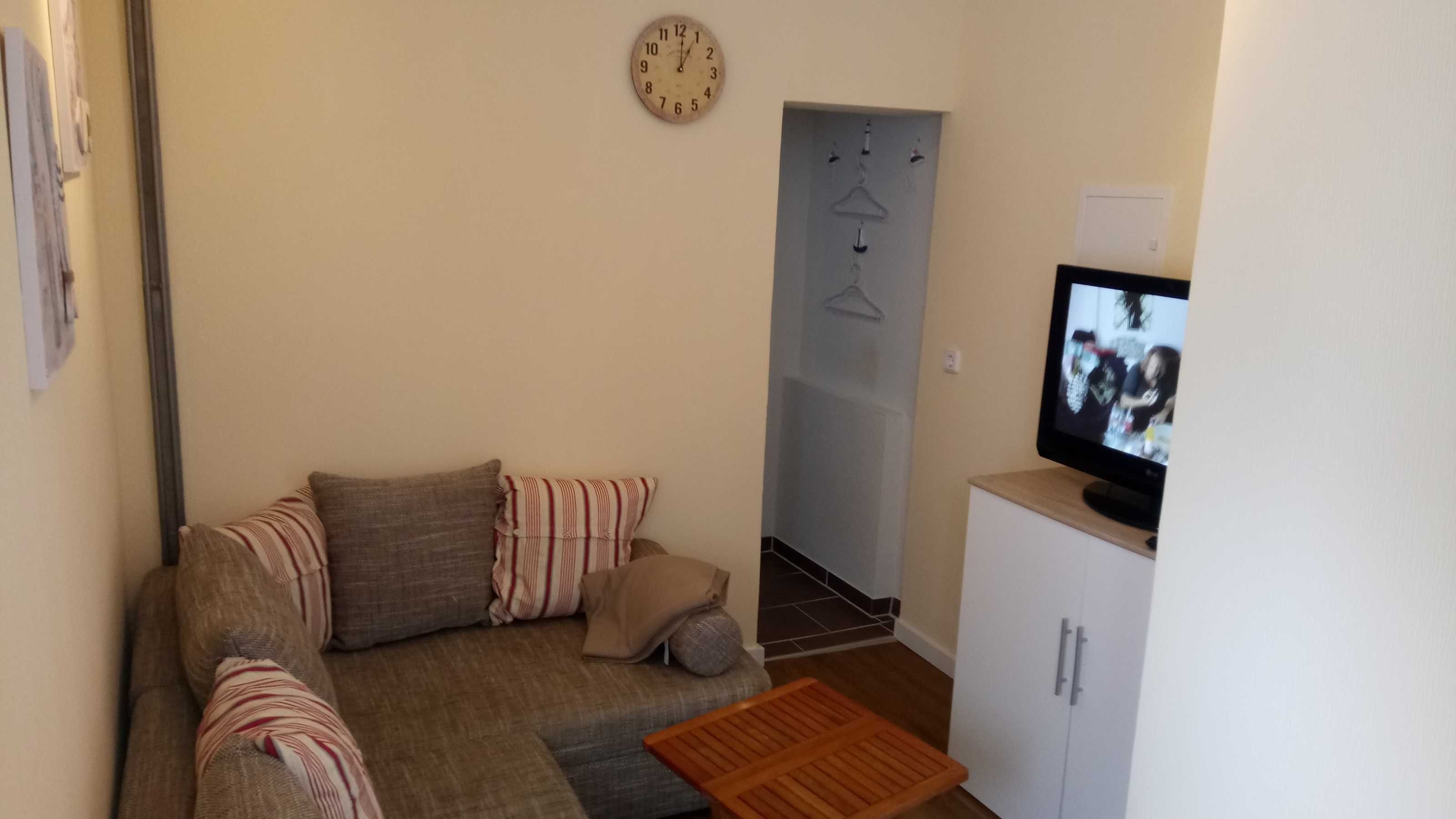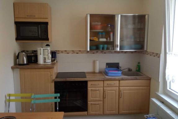 Die Ferienwohnung (40 qm) in der Zinnowitzer Kirchstraße ist über 2 Ebenen verteilt und befindet sich als separater Anbau am Mehrfamilien-Vermieterwohnhaus. Sie besteht aus 2 Schlafzimmern mit Doppel- bzw. Etagenbett (Bettwäsche wird gestellt, Handtücher bitte mitbringen) in der oberen Etage (durch eine etwas steile Treppe zu erreichen) und dem Wohnraum mit einer kleinen Küchenzeile, Kaffeemaschine, Wasserkocher und Toaster sowie Bad mit Dusche/WC im unteren Bereich. TV, Radio, eine Sitzgelegenheit mit Grillmöglichkeit und ein PKW-Stellplatz auf dem Grundstück sind vorhanden. Durch die zentrale Lage bedingt sind Einkaufsmöglichkeiten sowie touristische, kulturelle und gastronomische Einrichtungen in unmittelbarer Nähe. Kostenloser WLAN-Zugang.