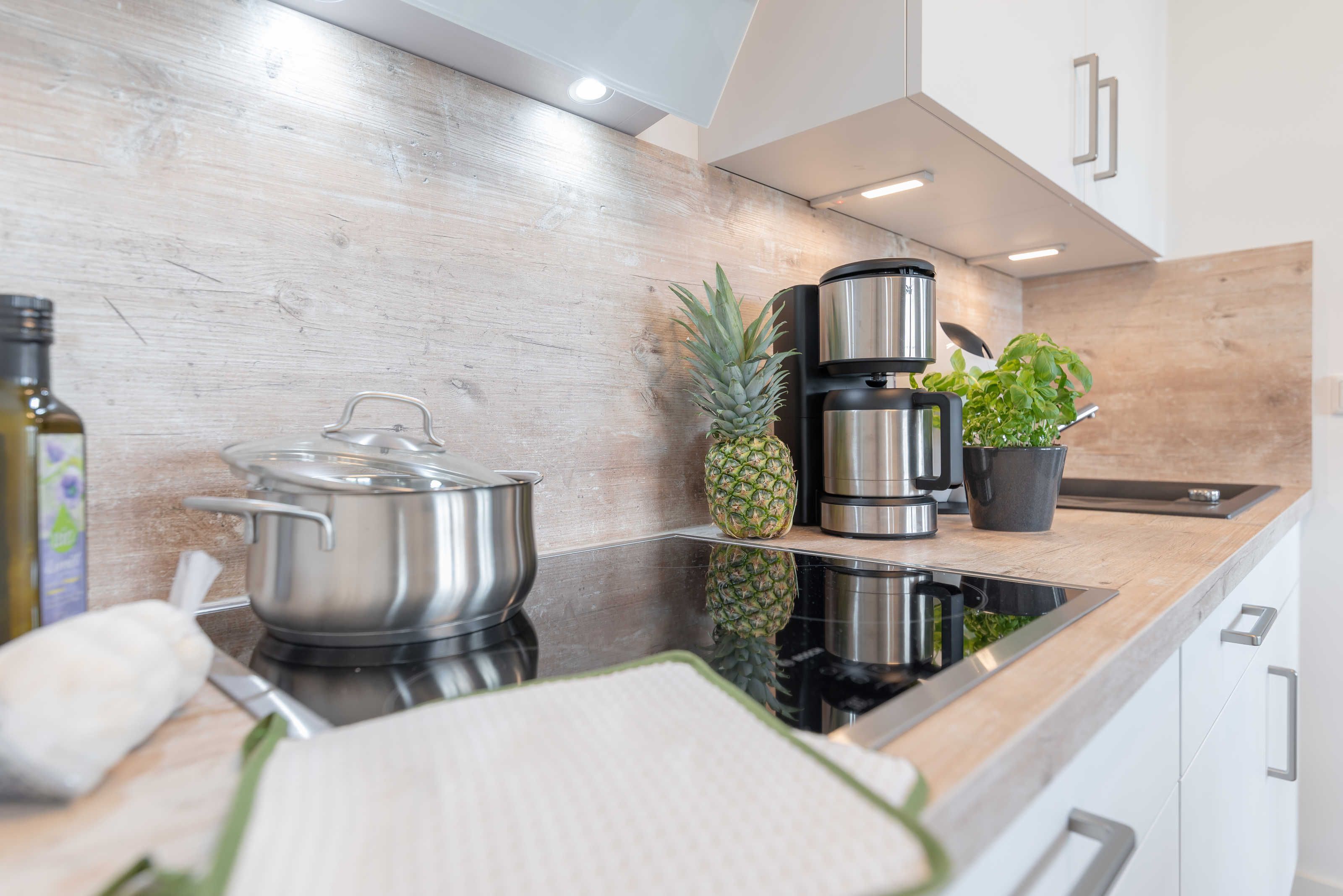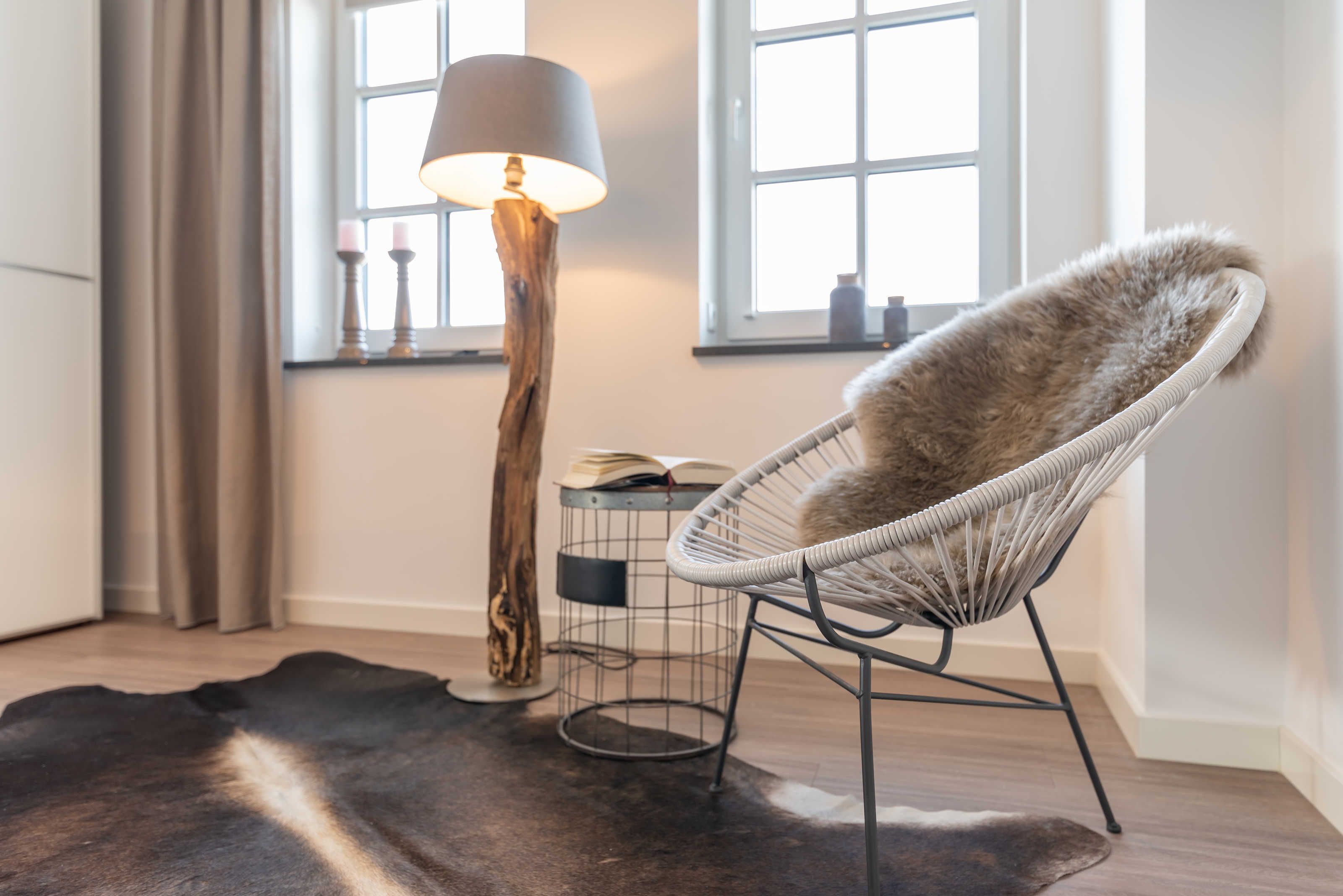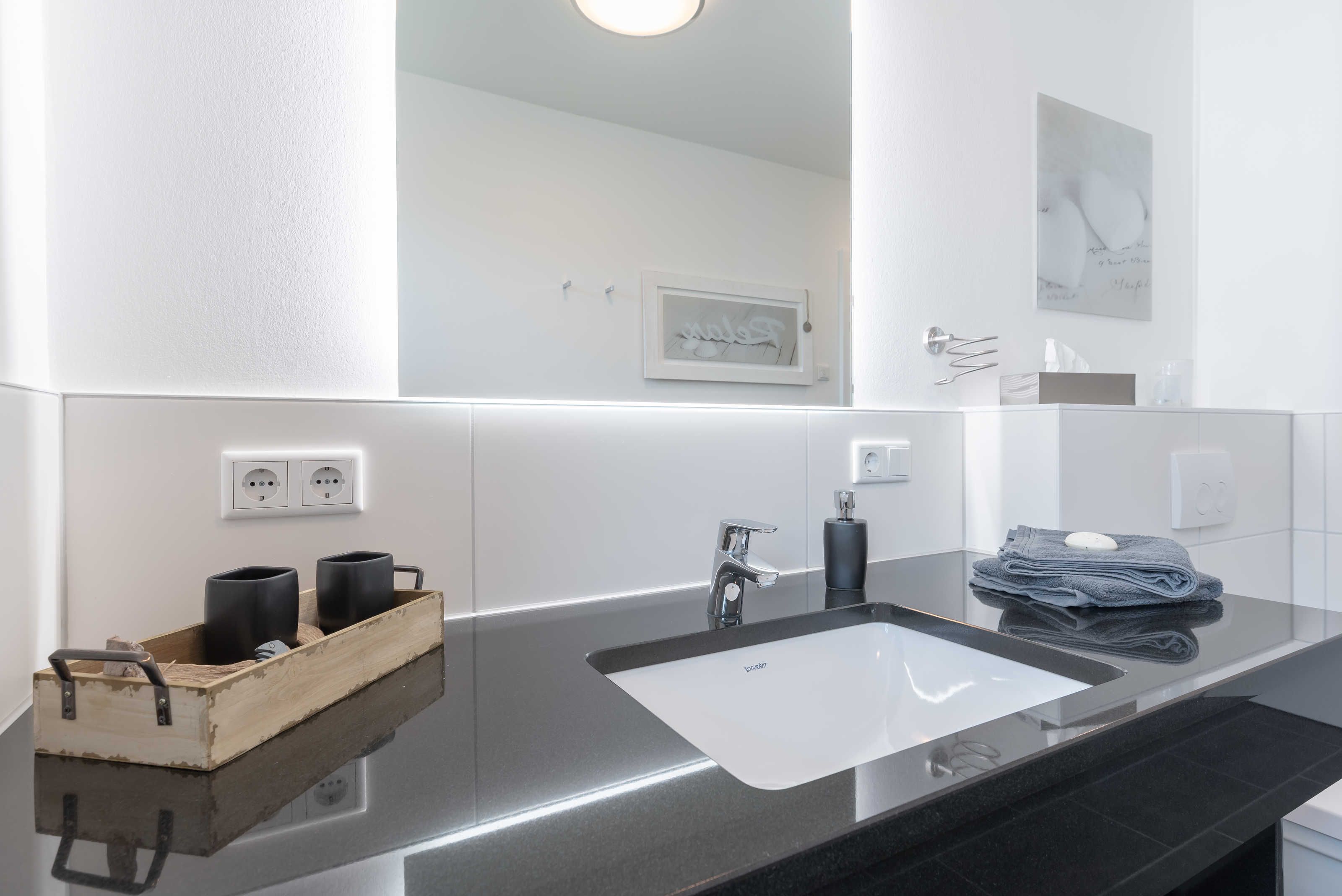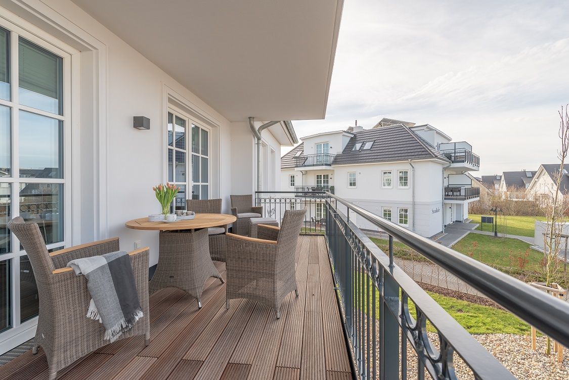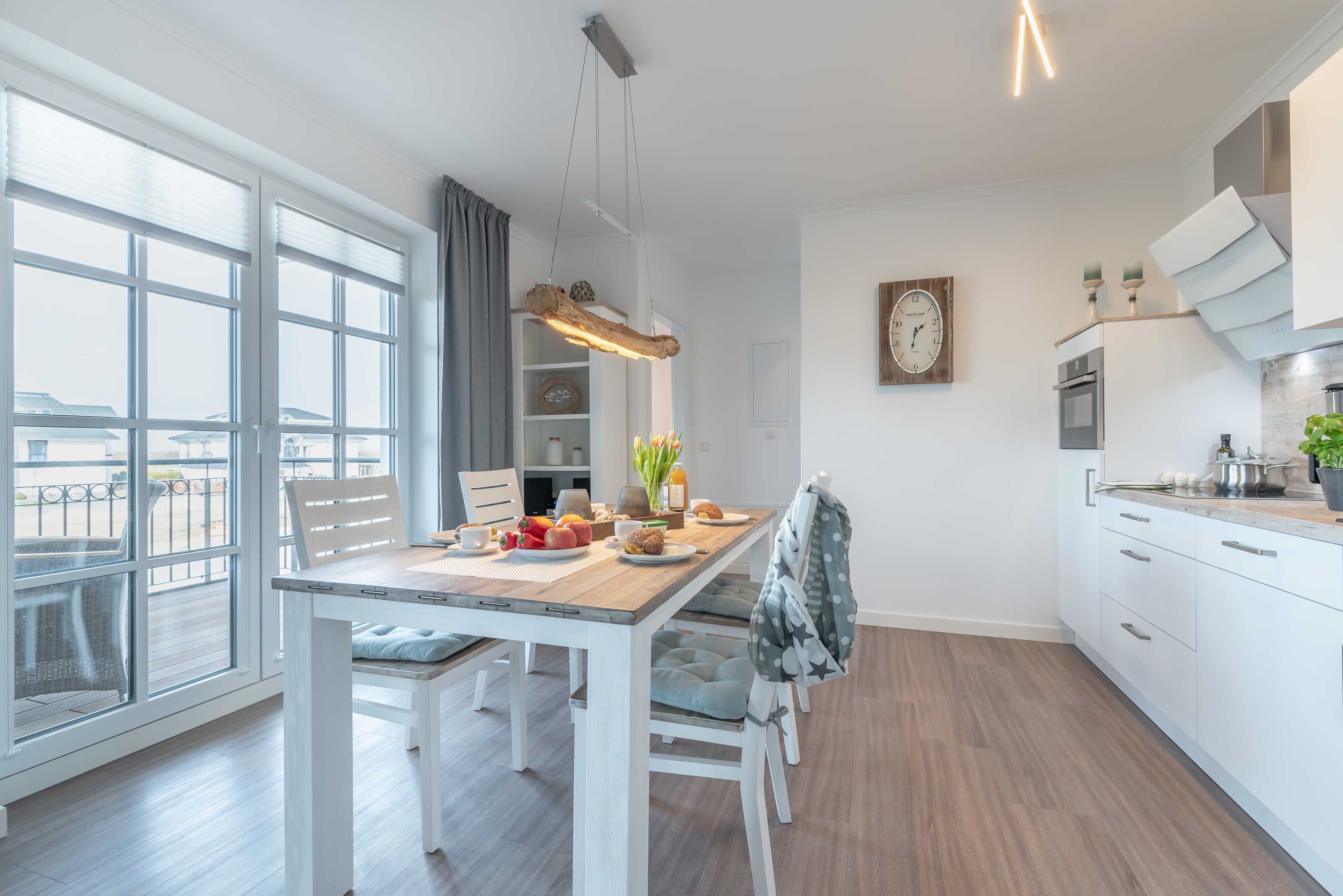 Die modern und liebevoll ausgestattete Unterkunft bietet ausreichend Platz für Familien oder Freundesgruppen mit bis zu vier Erwachsenen. Im Wohnzimmer sind eine Couch mit passendem Sessel und ein Esstisch mit vier Stühlen vorhanden. Zur Unterhaltung stehen ein 49 Zoll Flat-Screen-TV, ein Blu-Ray-Player und eine Mini-Stereoanlage zur Verfügung. In der voll ausgestatteten Küchenzeile finden Sie alles, was Sie für einen entspannten Aufenthalt benötigen: 4-Platten Cerankochfeld, Backofen mit integrierter Mikrowelle, Kühlschrank mit Tiefkühlfach, Geschirrspüler, Kaffeemaschine, Wasserkessel, Tassimo-Kapselmaschine und Toaster. Das erste Schlafzimmer ist mit einem komfortablen Boxspring Bett (180 x 200 cm) und einem Schwebetürenschrank sowie einem weiteren Flat-Screen-TV ausgestattet. Im zweiten Schlafzimmer befinden sich ein Doppelbett (140 x 200 cm) und ein eigener Kleiderschrank. Beide Schlafzimmer sind mit Verdunklungsplissees ausgestattet. Das Bad ist besticht mit einer bodengleichen Dusche mit Regenbrause, einem Handtuchheizkörper und einem Waschtisch mit großem Spiegel, Ablage und Fön. Vom Wohnraum aus haben Sie Zugang zum großzügigen Balkon mit Tisch und vier Stühlen. Von hier aus können Sie den Meerblick genießen und bei einem Glas Wein die herrliche Abendsonne beobachten. An kühlen Herbst- und Wintertagen sorgt eine Fußbodenheizung für Wärme und Gemütlichkeit.