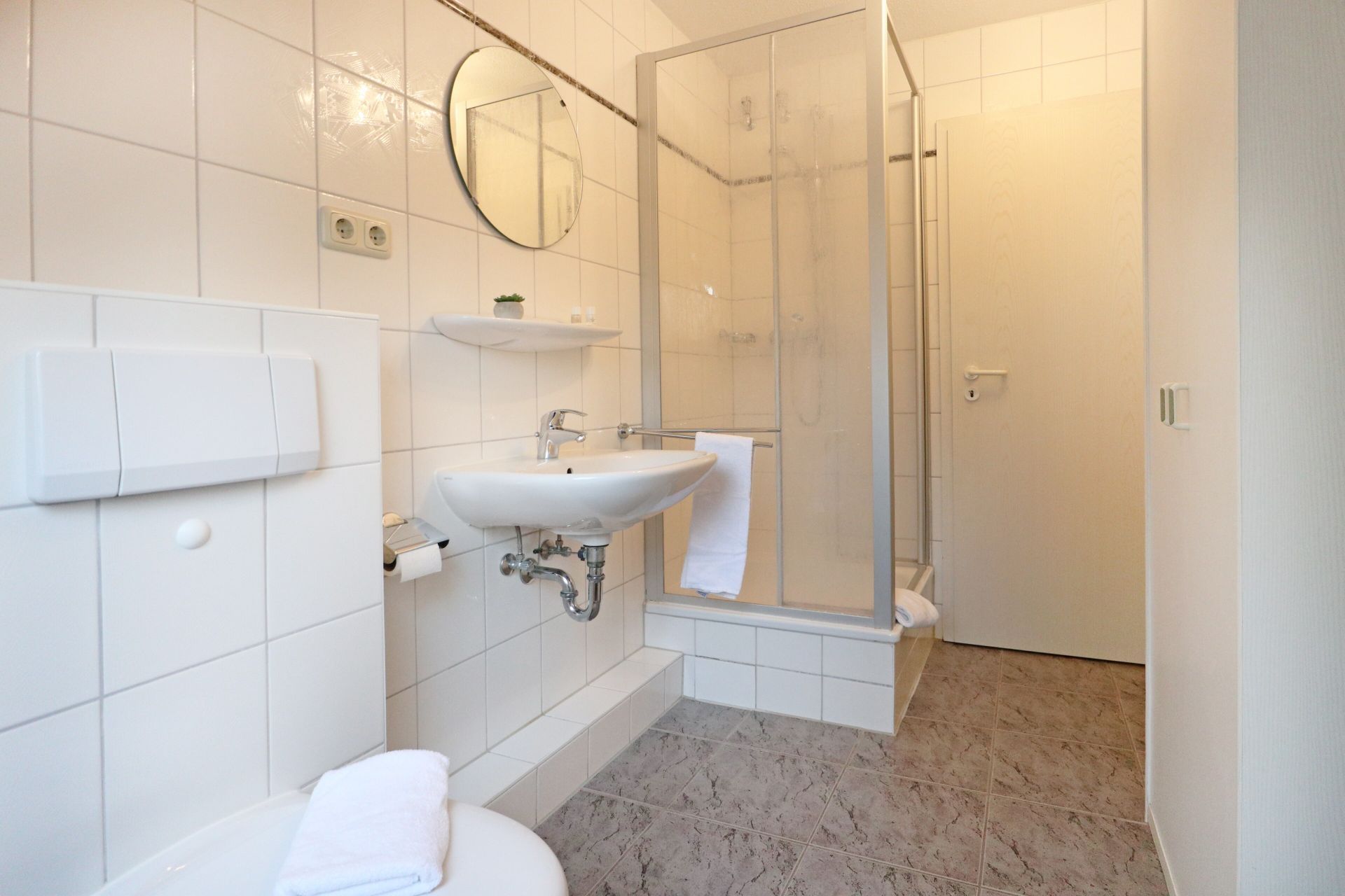 Zugehörig ist ein zweckmäßiges Duschbad mit Waschtisch, WC. Ihren PKW parken Sie bequem direkt auf dem fest zugeordneten Außenstellplatz hinter dem Haus. Die Wohnung ist eine Nichtraucherwohnung, in der Haustiere nicht gestattet sind. Kein WLAN vorhanden.