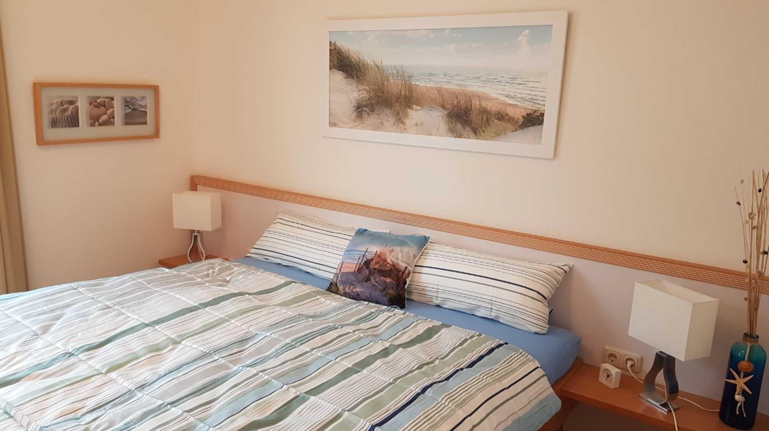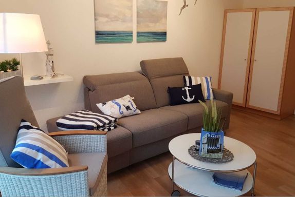 Die frisch renovierte 2-Zimmer-Ferienwohnung (45m² / Nichtraucher) befindet sich im 1.OG eines sehr gepflegten Appartementhauses in erster Reihe zum Strand und zum Ort.
