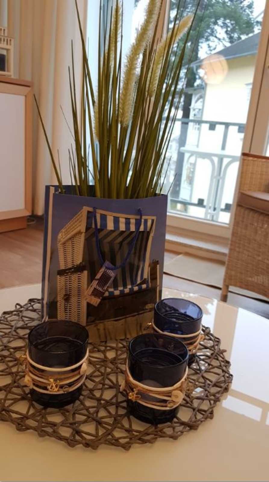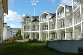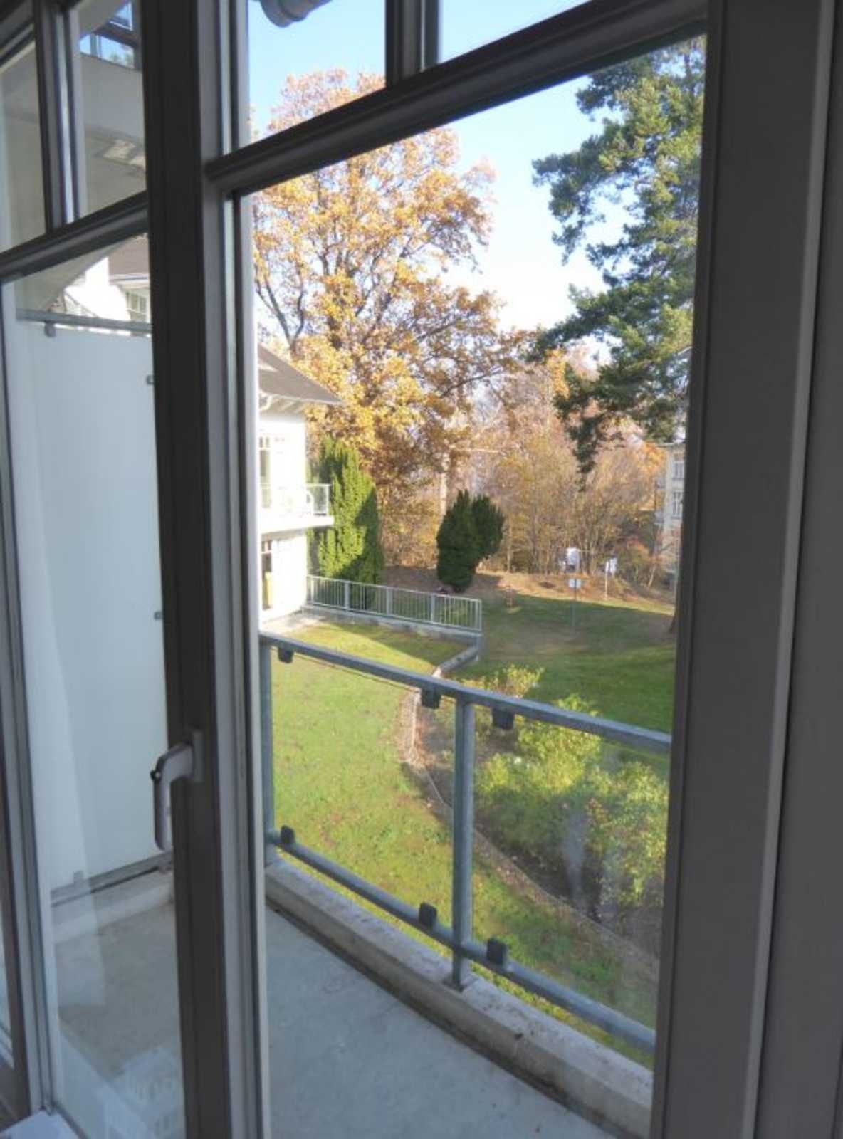 Der vor dem Wohnraum liegende Ost-Balkon ermöglicht einen traumhaften Blick in den ehemaligen Park der Villa Granitz und zur Ostsee. Der Meerblick ist im Sommer durch die Bäume an der Promenade eingeschränkt.