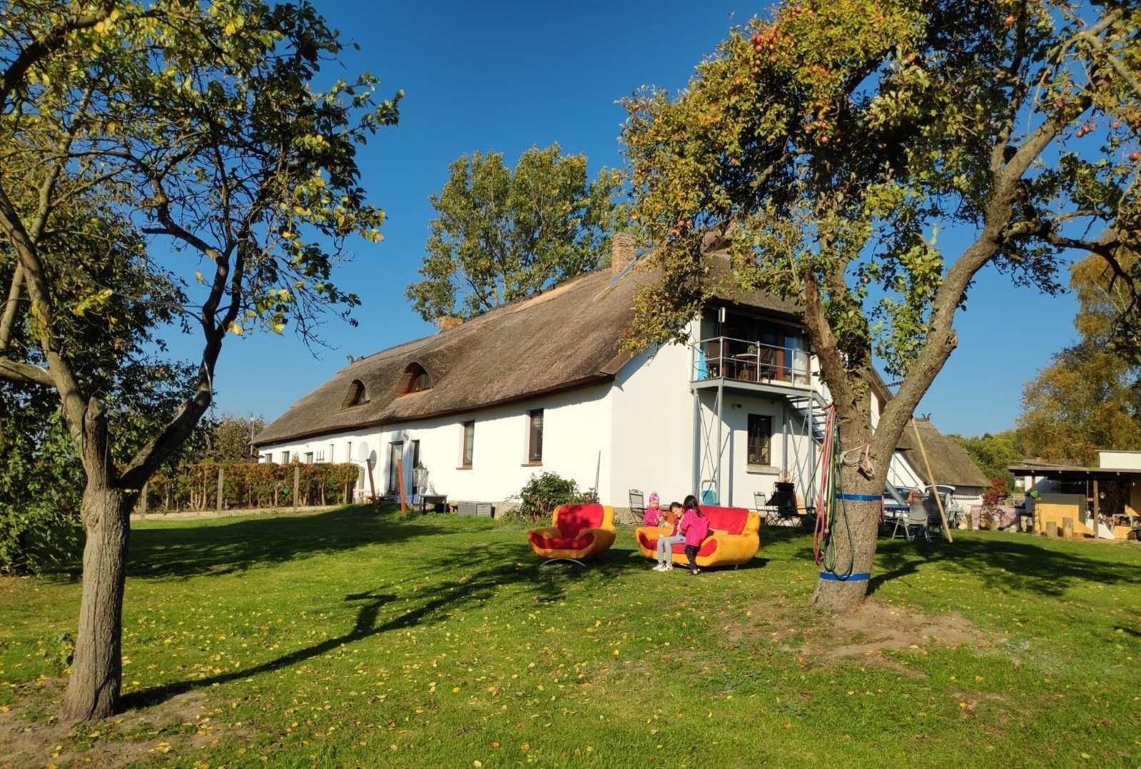 Unser familiefreundliches Reetdachhaus mit einer Wohnfläche von 140 m² steht auf einem zum Teil umzäunten Grundstück und endet an einem Bach. Es steht auf einem 5000 m² großen Grundstück mit großer Wiese und liegt in Waldnähe.