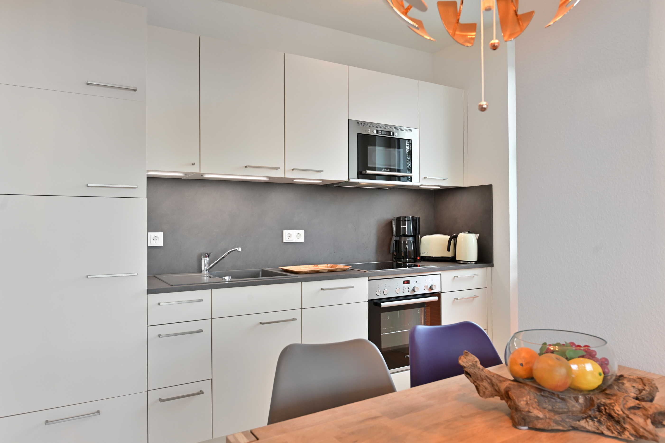 Küche mit Spülmaschine, Herd mit Backofen, Gefriermöglichkeit, Mikrowelle