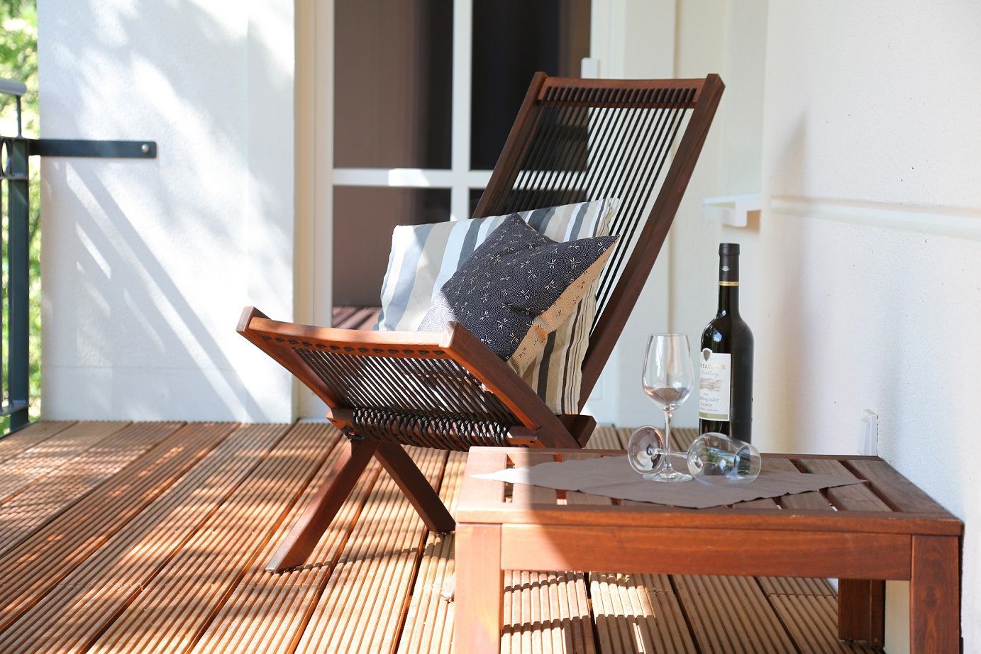 Der Balkon und unsere Loggia sind ideal für ein ausgiebiges Frühstück und laden am Abend zu einem Getränk nach einem sonnenreichen Tag am Strand ein.