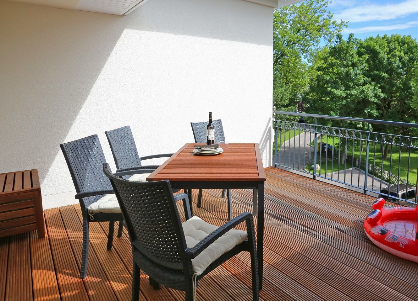 Unsere Ferienwohnung Käpt´n Blaubär mit Süd-Balkon (10m²) und wind- und blickgeschützter Loggia (14m²) gen Osten befindet sich im 2. Obergeschoss in einer 2015 fertiggestellten, architektonisch ansprechenden ruhigen Wohnanlage im idyllischen Ostseebad Nienhagen.