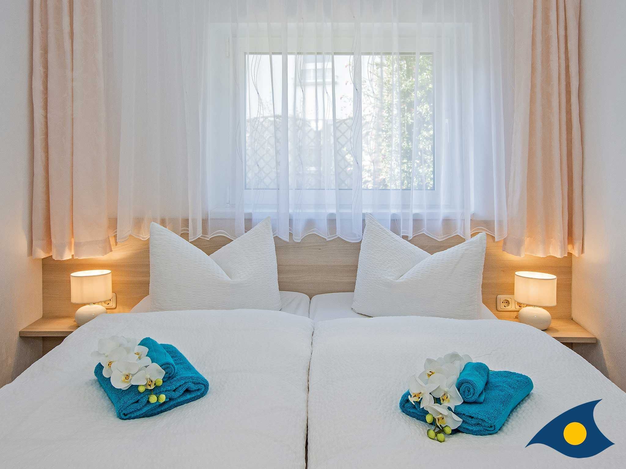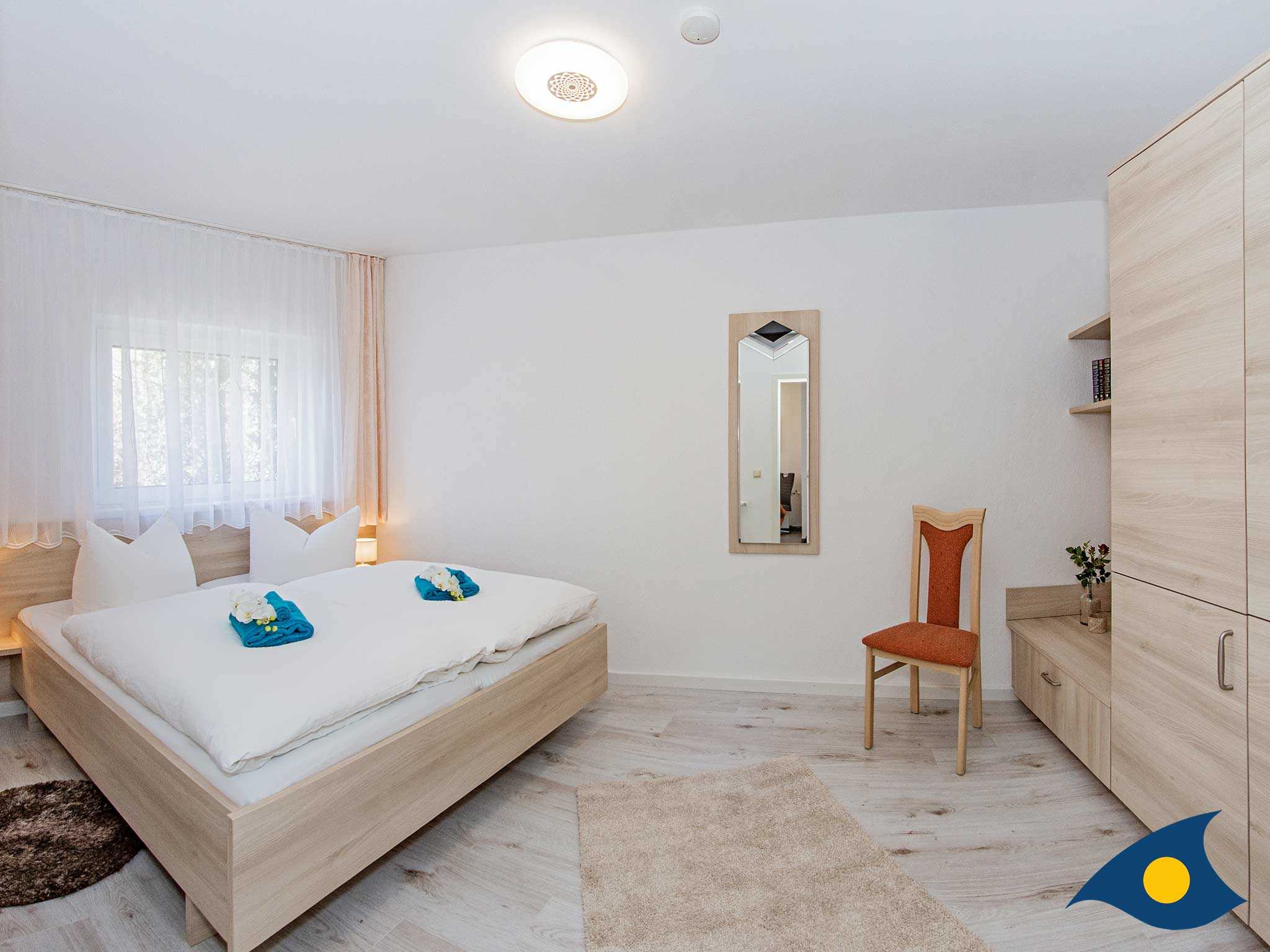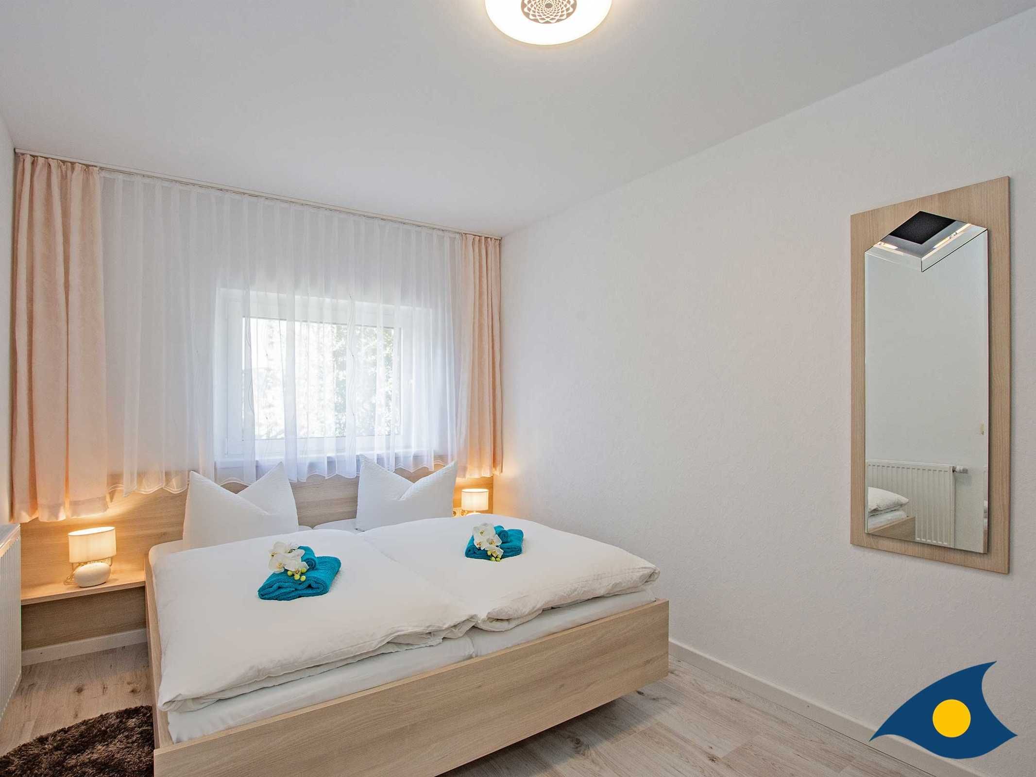Der Schlafraum sorgt für erholsame Träume und Ruhe nach einem ereignisreichen Urlaubstag. Dort erwartet Sie ein großzügiges Doppelbett (160 x 200 cm).
