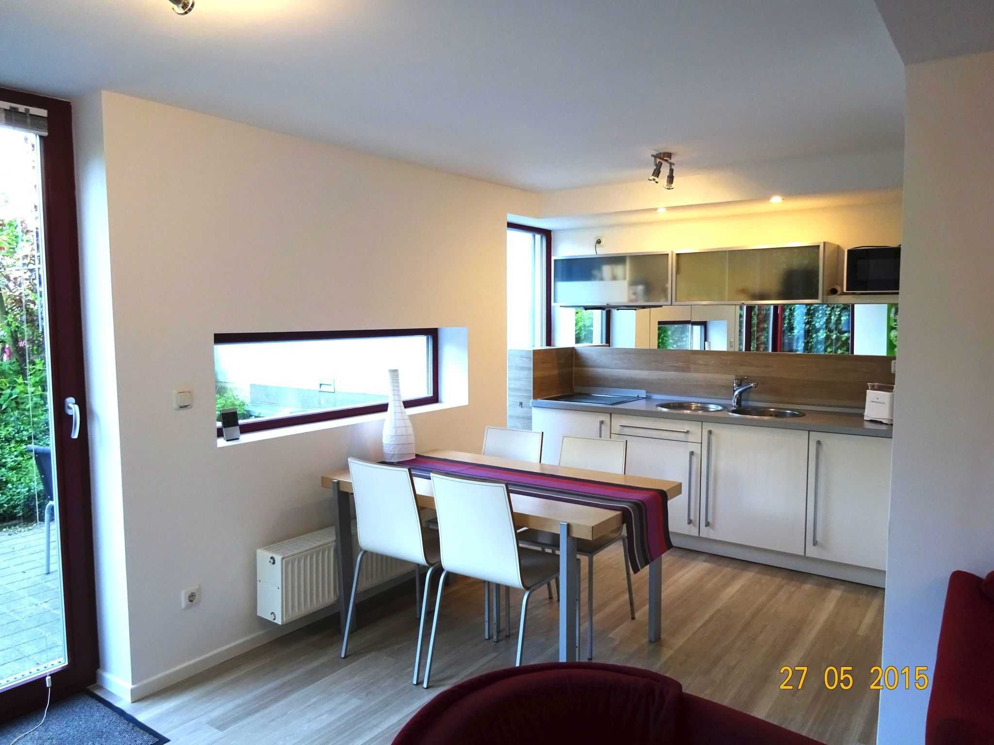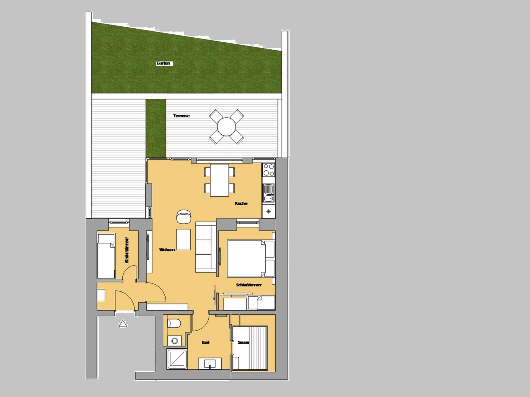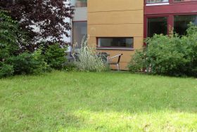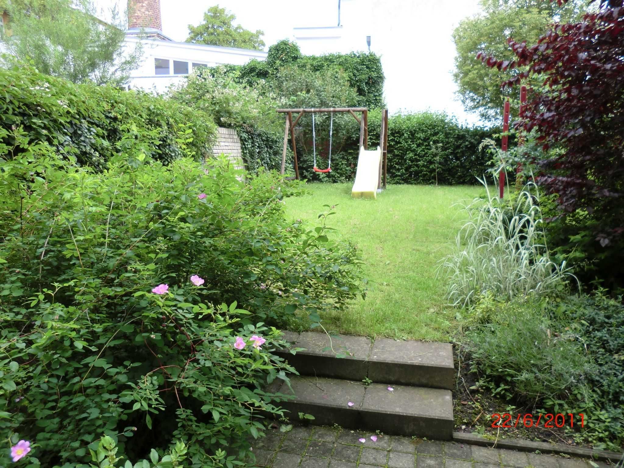 Vor dem Haus steht Ihnen eine Terrasse mit Gartenmöbeln und Grill zur Verfügung. Im angrenzenden eigenen Garten befindet sich ein Klettergerüst, eine Schaukel und eine Rutsche.