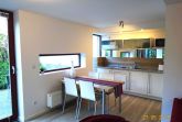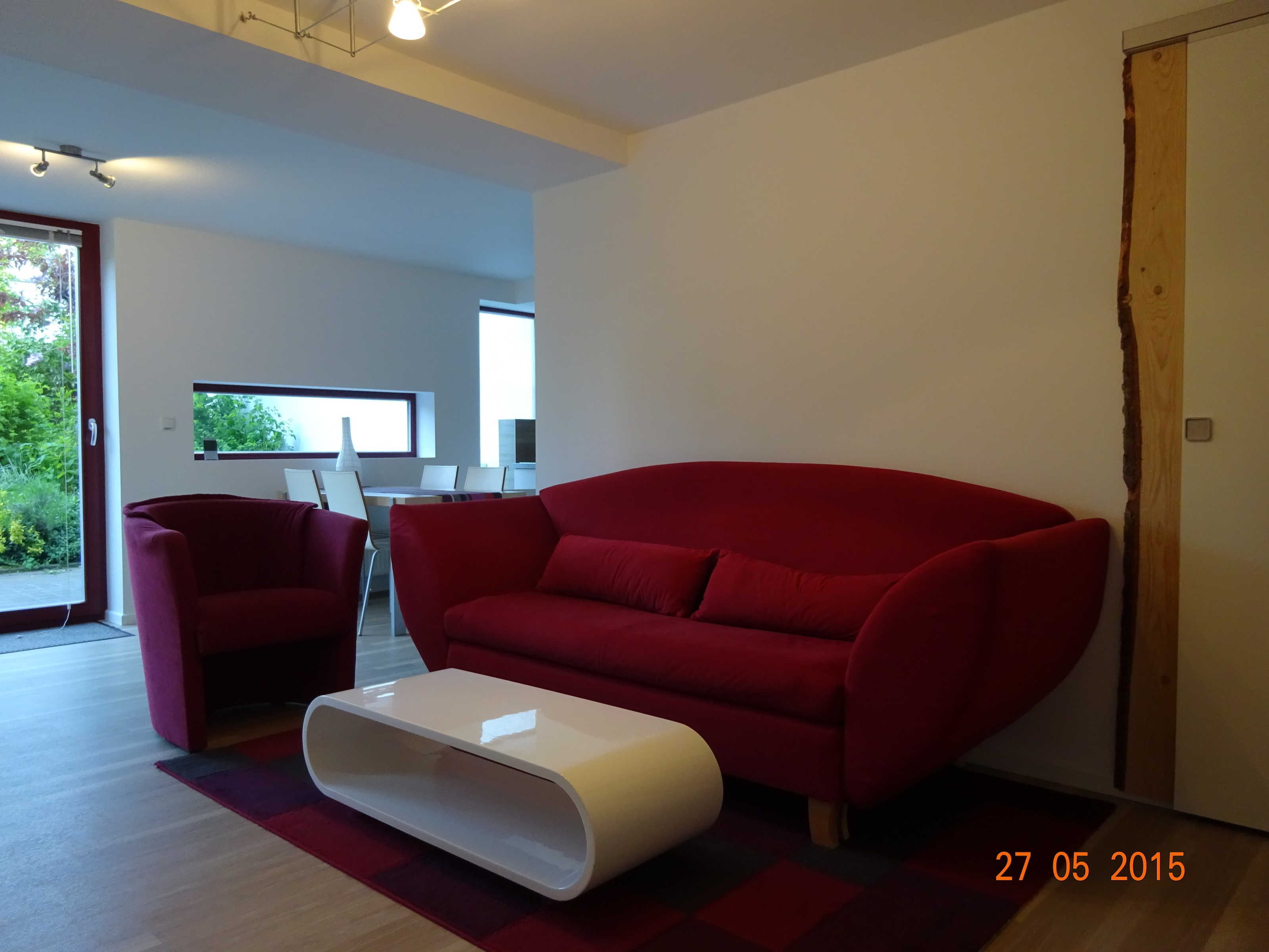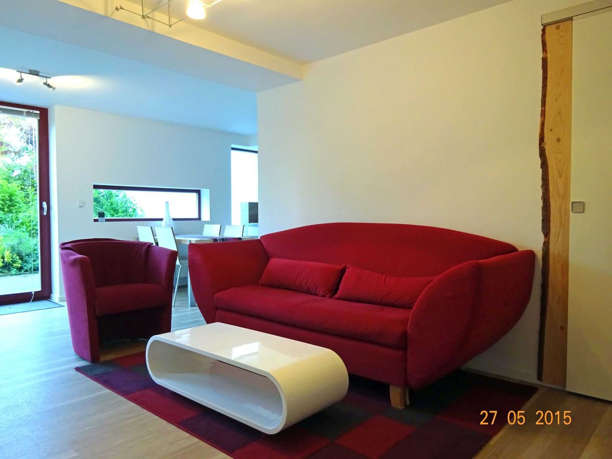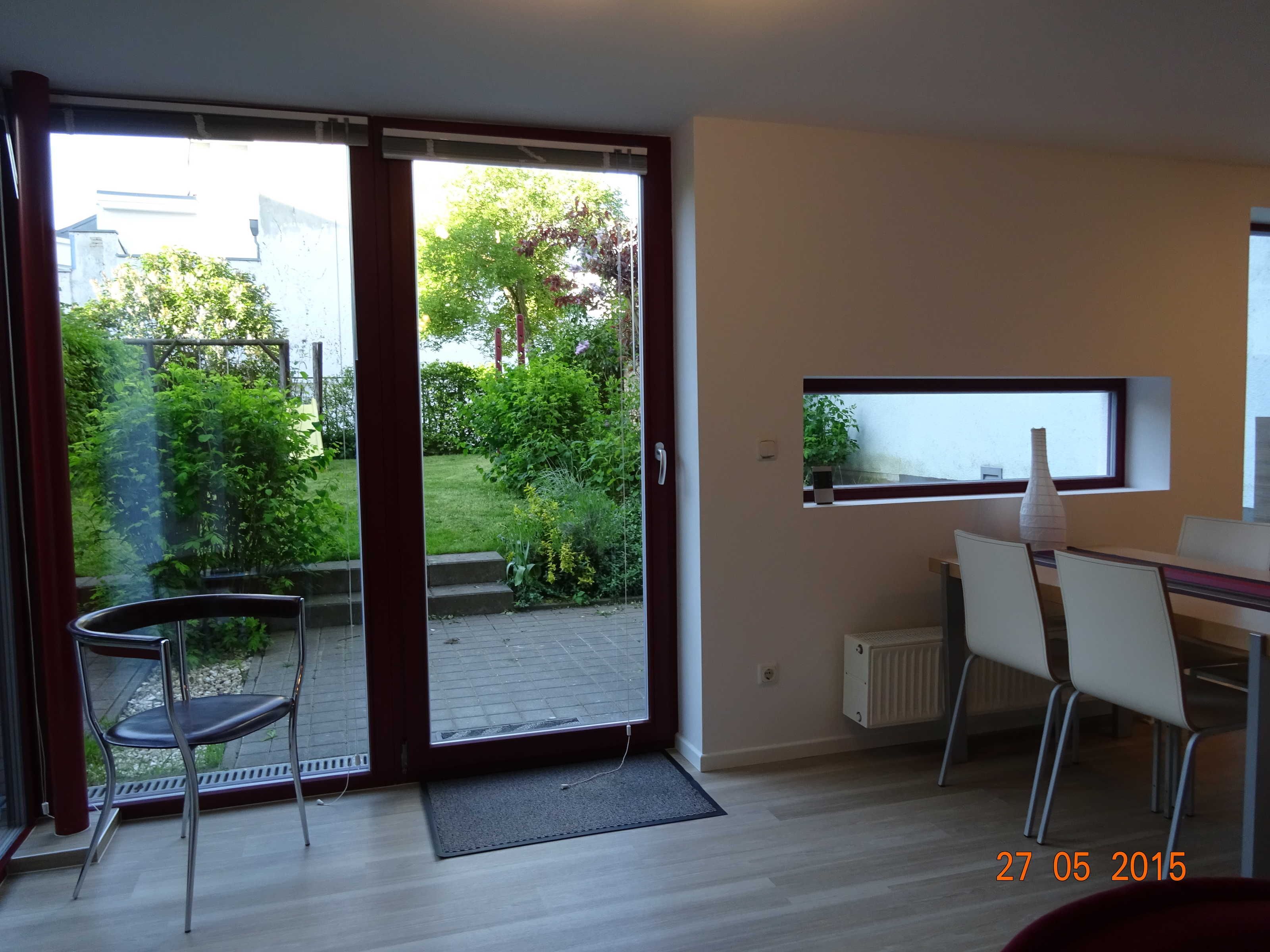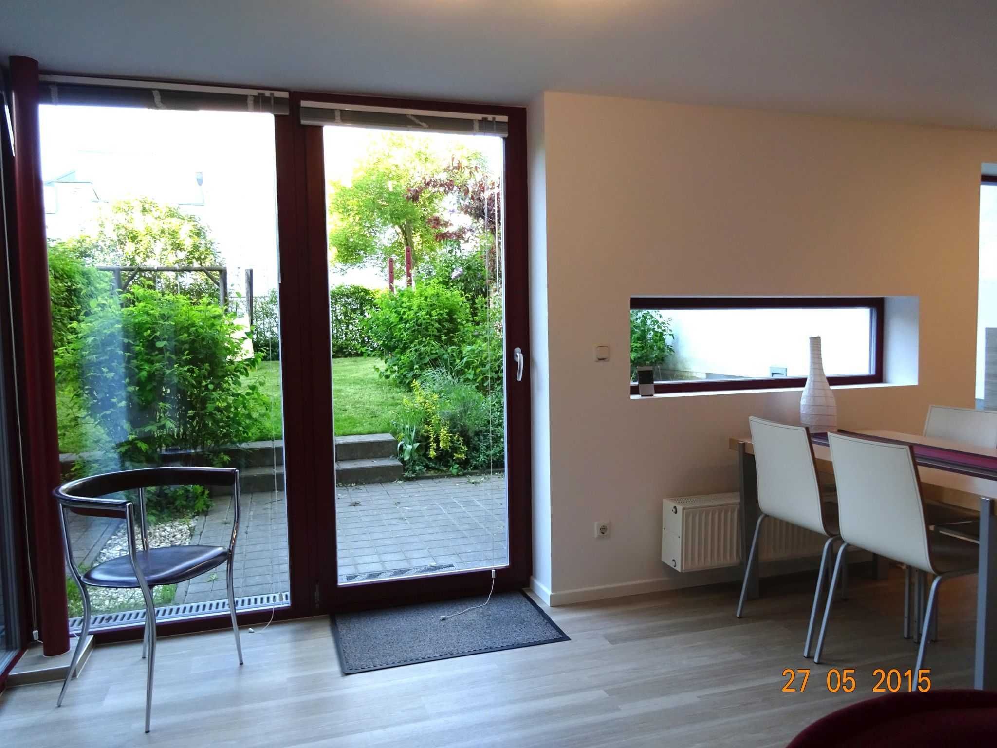 Vor dem Haus steht Ihnen eine Terrasse mit Gartenmöbeln und Grill zur Verfügung. Im angrenzenden eigenen Garten befindet sich ein Klettergerüst, eine Schaukel und eine Rutsche.