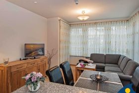 Die gemütliche Schlafcouch im Wohnzimmer steht als Aufbettungsmöglichkeit für eine 3. Person zur Verfügung. Die elektrischen Außenjalousien sorgen für erholsamen Schlaf im Wohn- und Schlafzimmer.