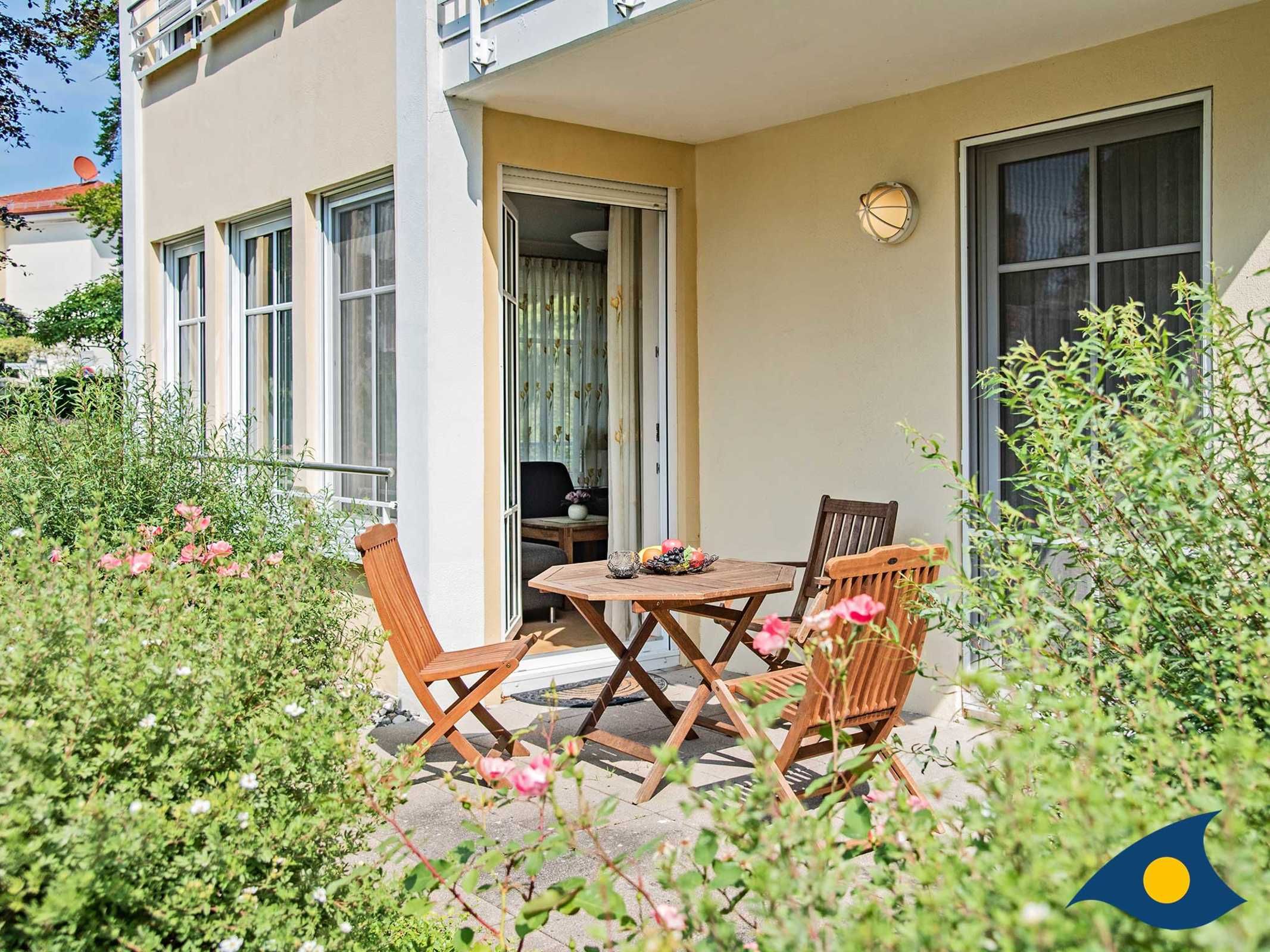 Die Süd-West-Terrasse lädt zum Verweilen ein. Auf dem abgegrenzten Grundstück befindet sich ein kleiner Kinderspielplatz mit Sandkasten und Rutsche für die kleinen Gäste.