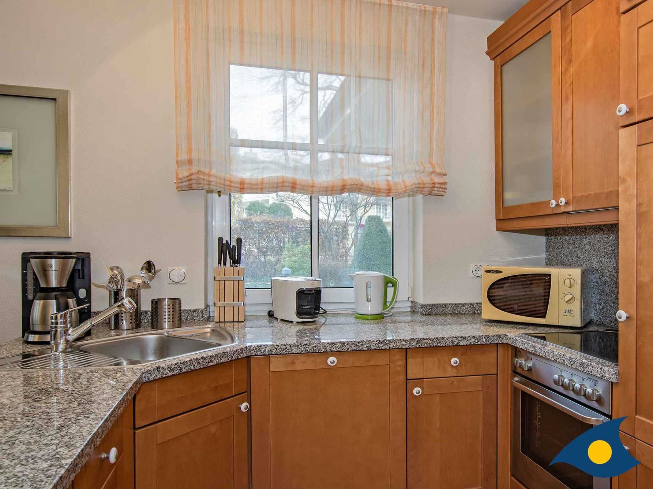 Die offene, voll ausgestattete Küchenzeile samt Essplatz lädt zum gemeinsamen Kochen und Schlemmen ein. Die Fliegengitter in allen Räumen sorgen für einen Insektenfreien Urlaub. In dem geschmackvoll gestalteten Badezimmer finden Sie eine Badewanne mit einer integrierten Dusche.
