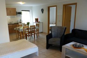 Der Ferienpark befindet sich in einer schönen Parklandschaft und ist ruhig gelegen. Der schön angelegte Spielplatz mit Rutsche, Sandkasten, Klettergerüst, Baumschaukel und Tischtennisplatte bietet Kindern viele Möglichkeiten zum Spielen und Herumtollen. Freizeitmöglichkeiten wie Reiten, Surfen, Biken und Golfen sind im nahen Umfeld zu finden. Wer Natur pur erleben möchte, kann lange Spaziergänge entlang der Küste oder im Wald genießen und hier die unberührte Landschaft erleben. Die abgeschlossene Wohnanlage bietet in drei Häusern insgesamt 20 Ferienwohnungen unterschiedlicher Größe, die besonders für Familien gut geeignet sind. Die Wohnungen sind mit einer Pantry ausgestattet und bieten ideale Bedingungen für einen erholsamen Urlaub an der Ostsee. Zu den Ferienwohnungen im Erdgeschoß gehört jeweils eine Terrasse, die mit Gartenmöbeln ausgestattet ist. Ein Grill kann gemietet werden. Kostenlose Parkplätze stehen allen unseren Gästen zur Verfügung.