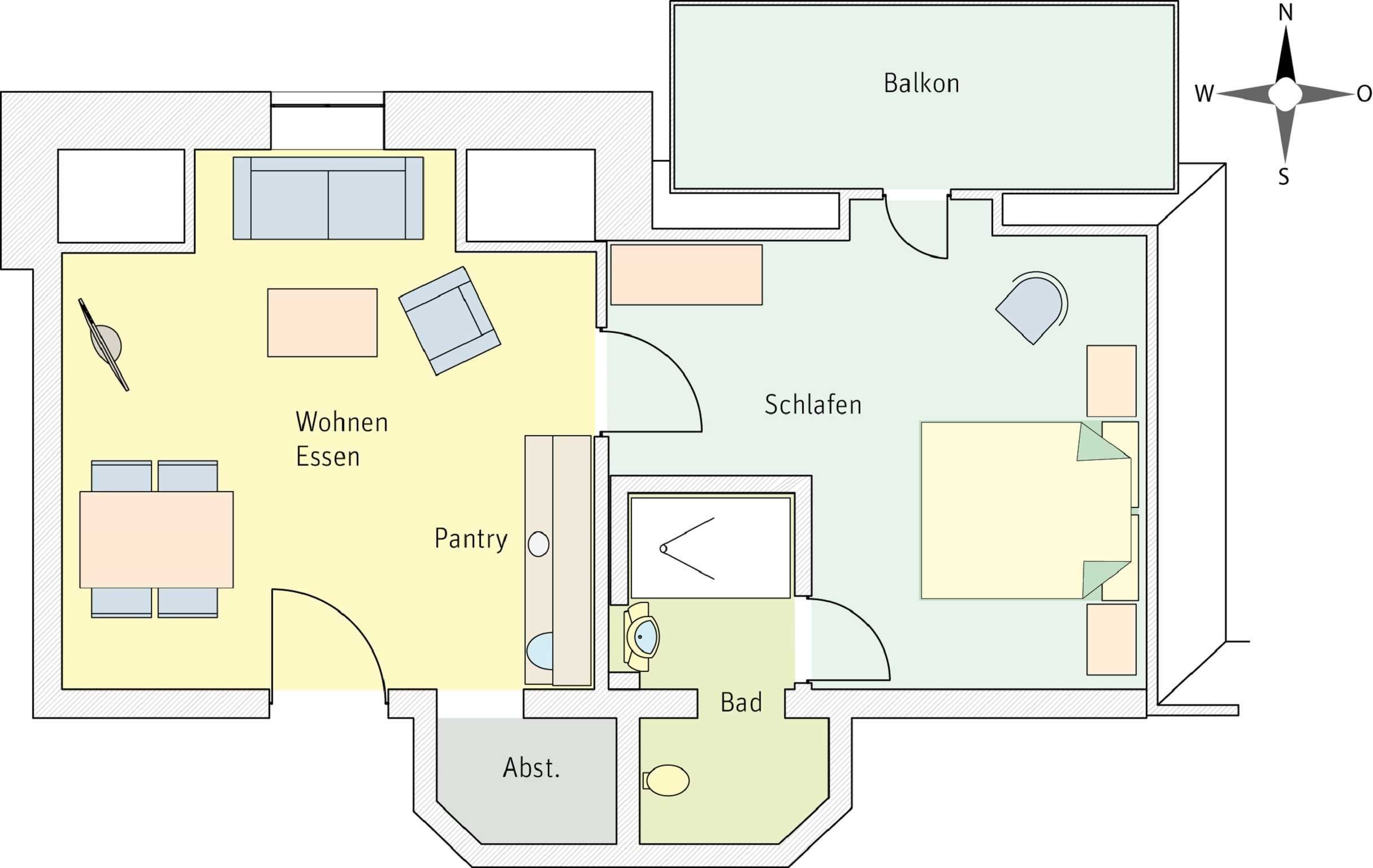 und Balkon mit Möbeln zur Nordseite.