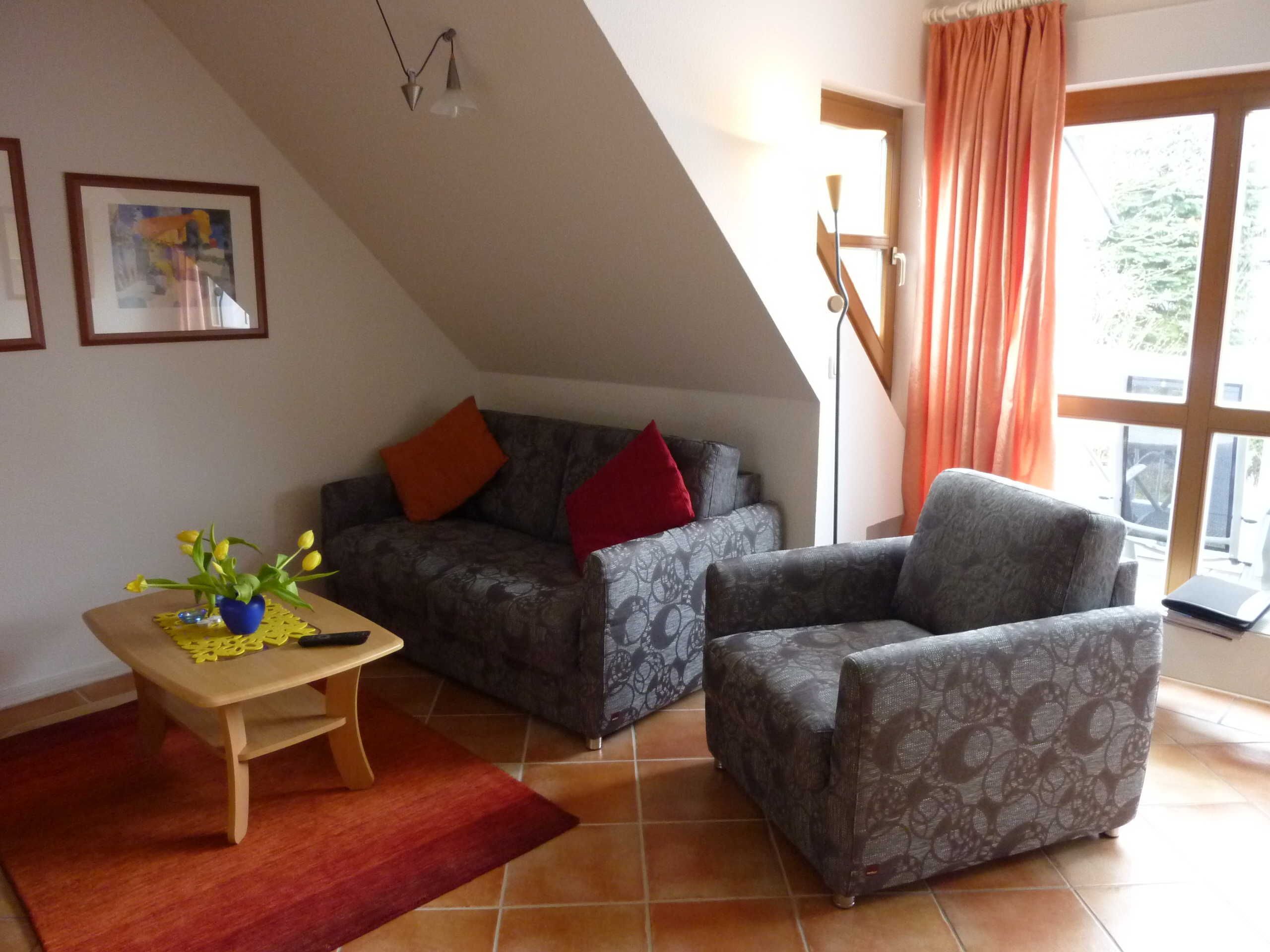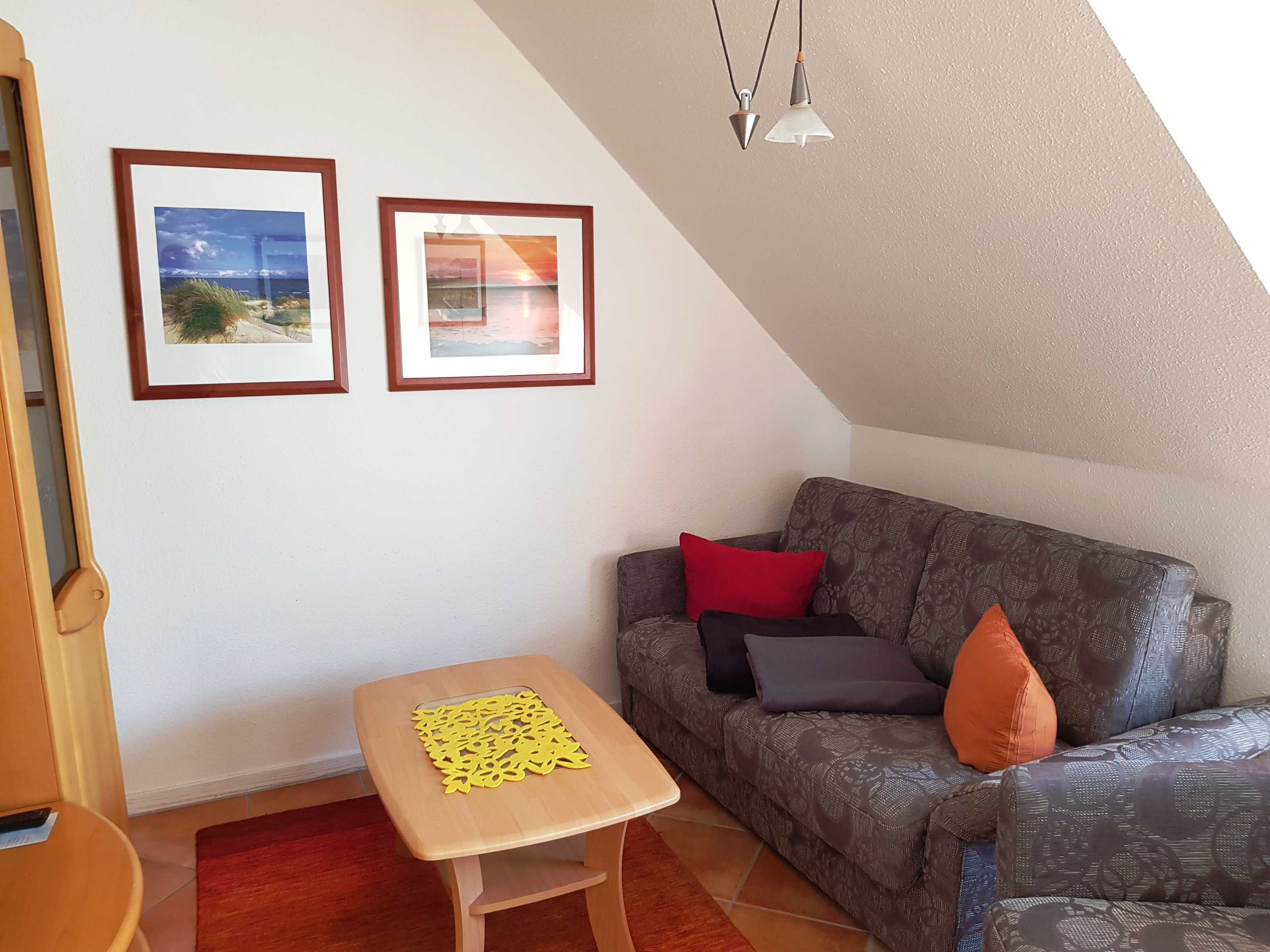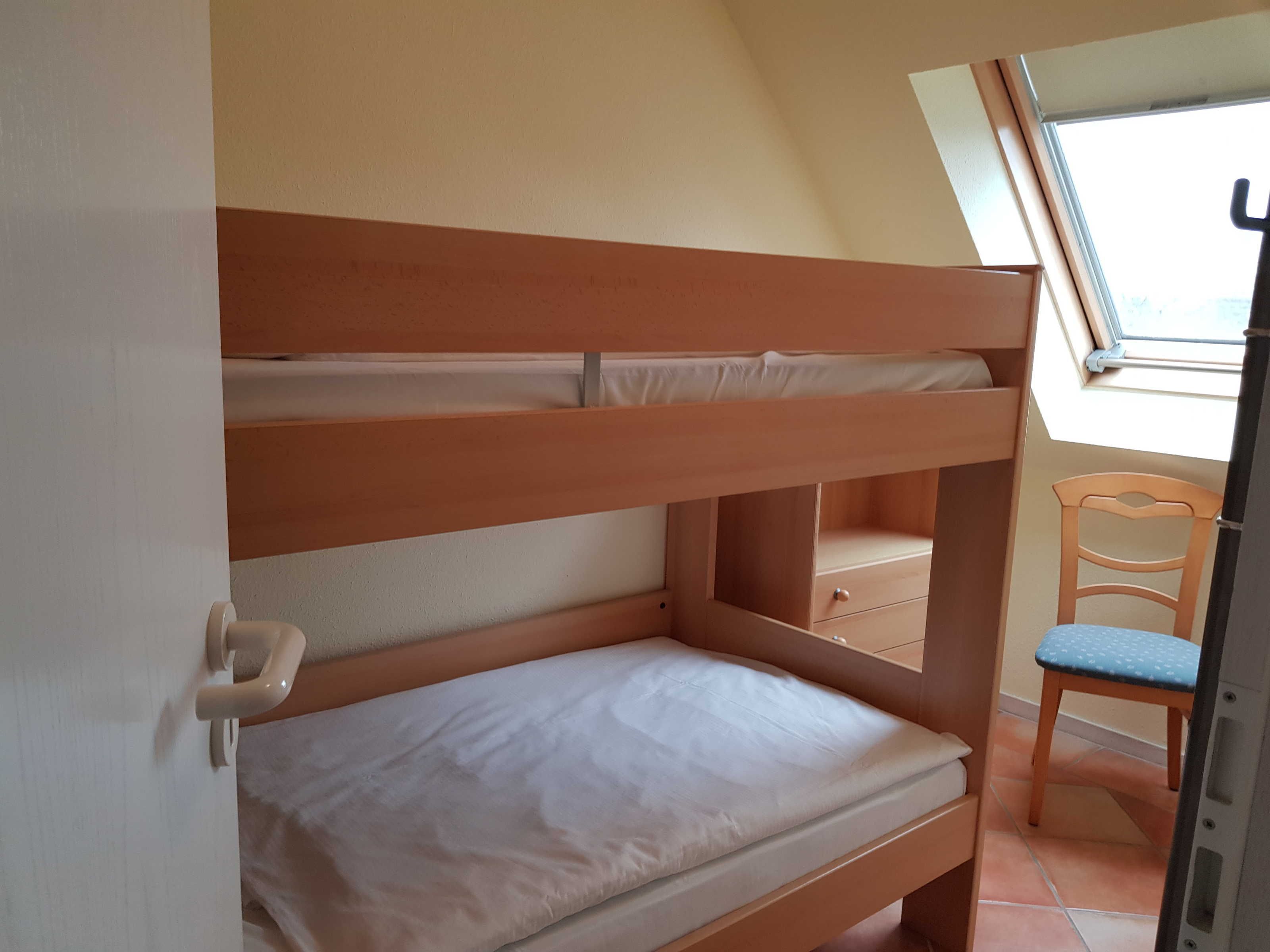 3 Raum Maisonette Apartment 2 Schlafzimmern, eins mit Doppelbett und eins mit Doppelstockbett . Einem Esstisch im Wohnraum für 4 Personen und gut ausgestatte Küche mit Geschirrspüer, Kaffemaschine, Wasserkocher etc. Babybetten ohne Wäsche können für einmalig 5 Euro gemietet werden. Bitte vorbestellen .