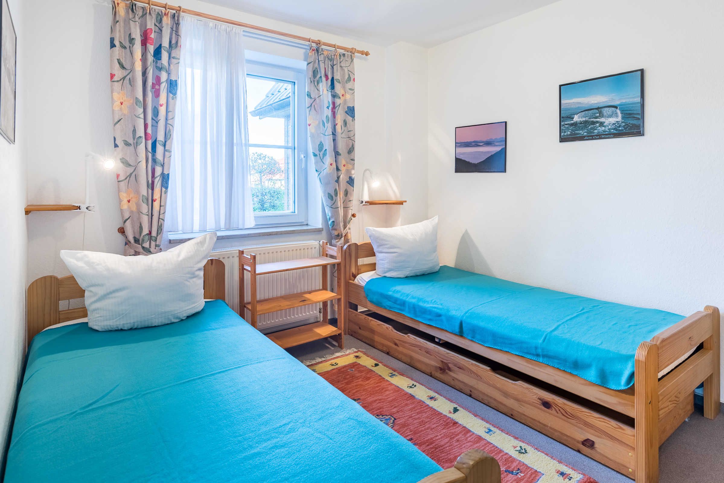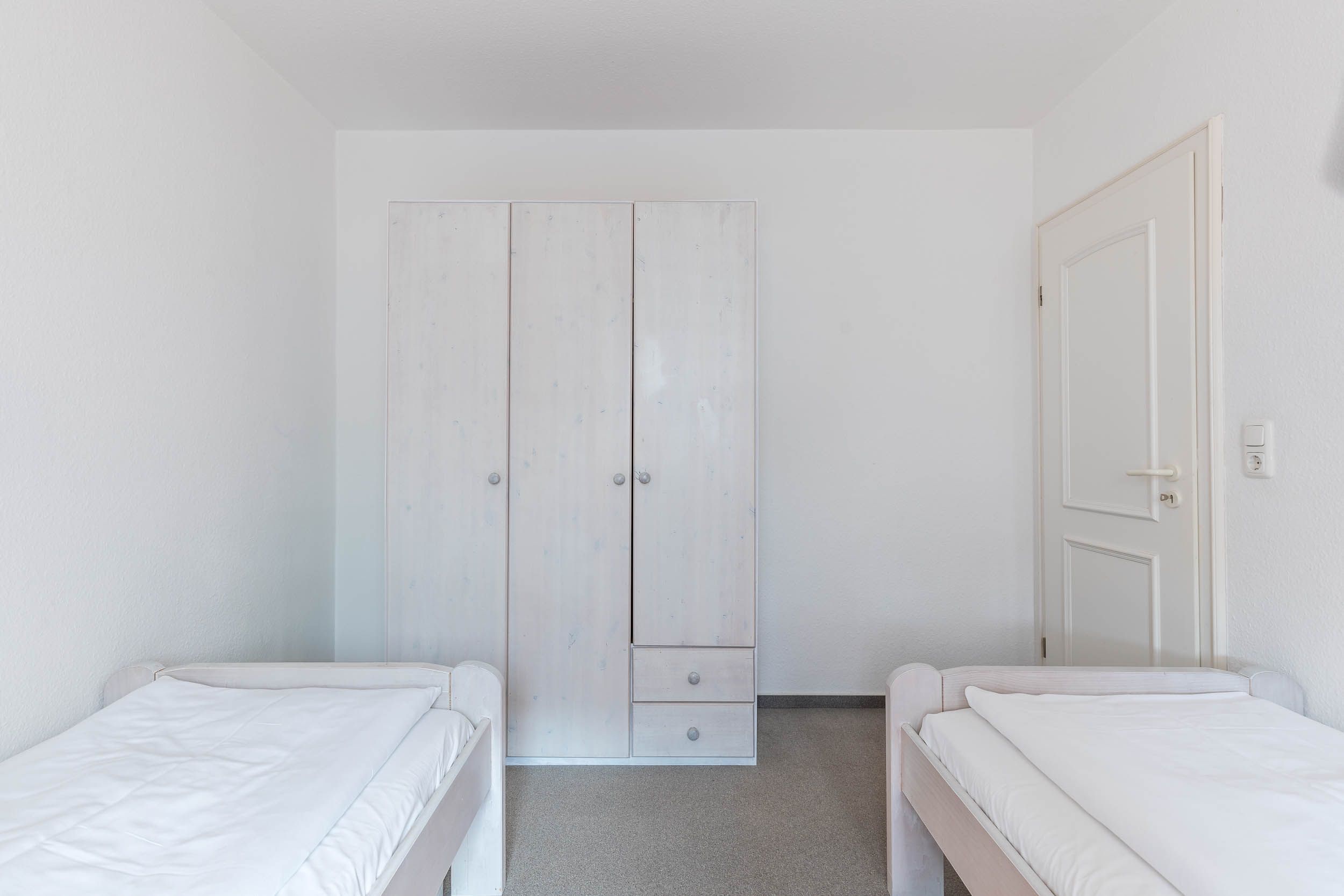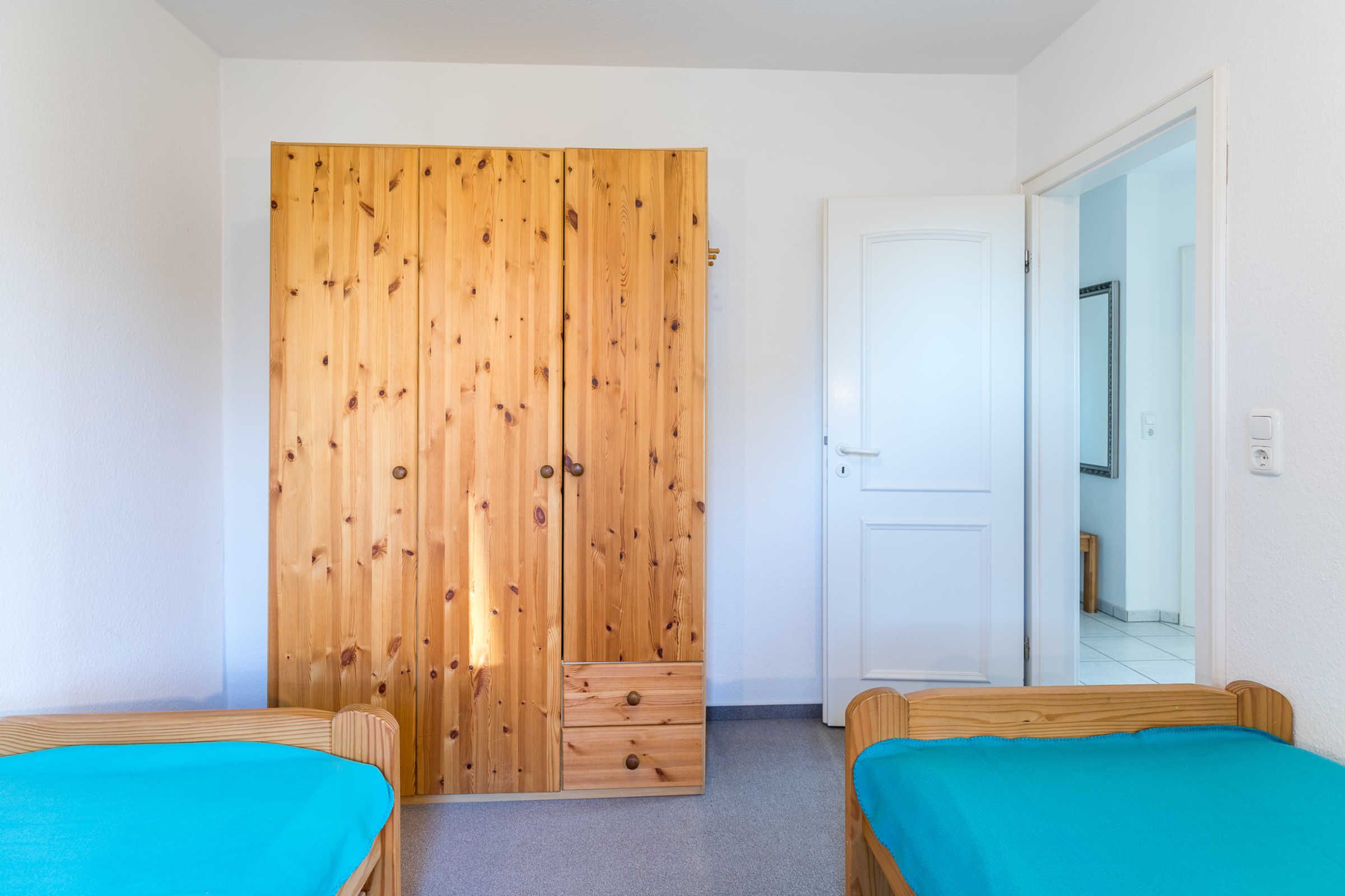 Das große Schlafzimmer bietet ein Doppelbett, im Kinder-/ Gästezimmer befinden sich zwei Einzelbetten. Beide Zimmer sind außerdem mit einem geräumigen Kleiderschrank ausgestattet.