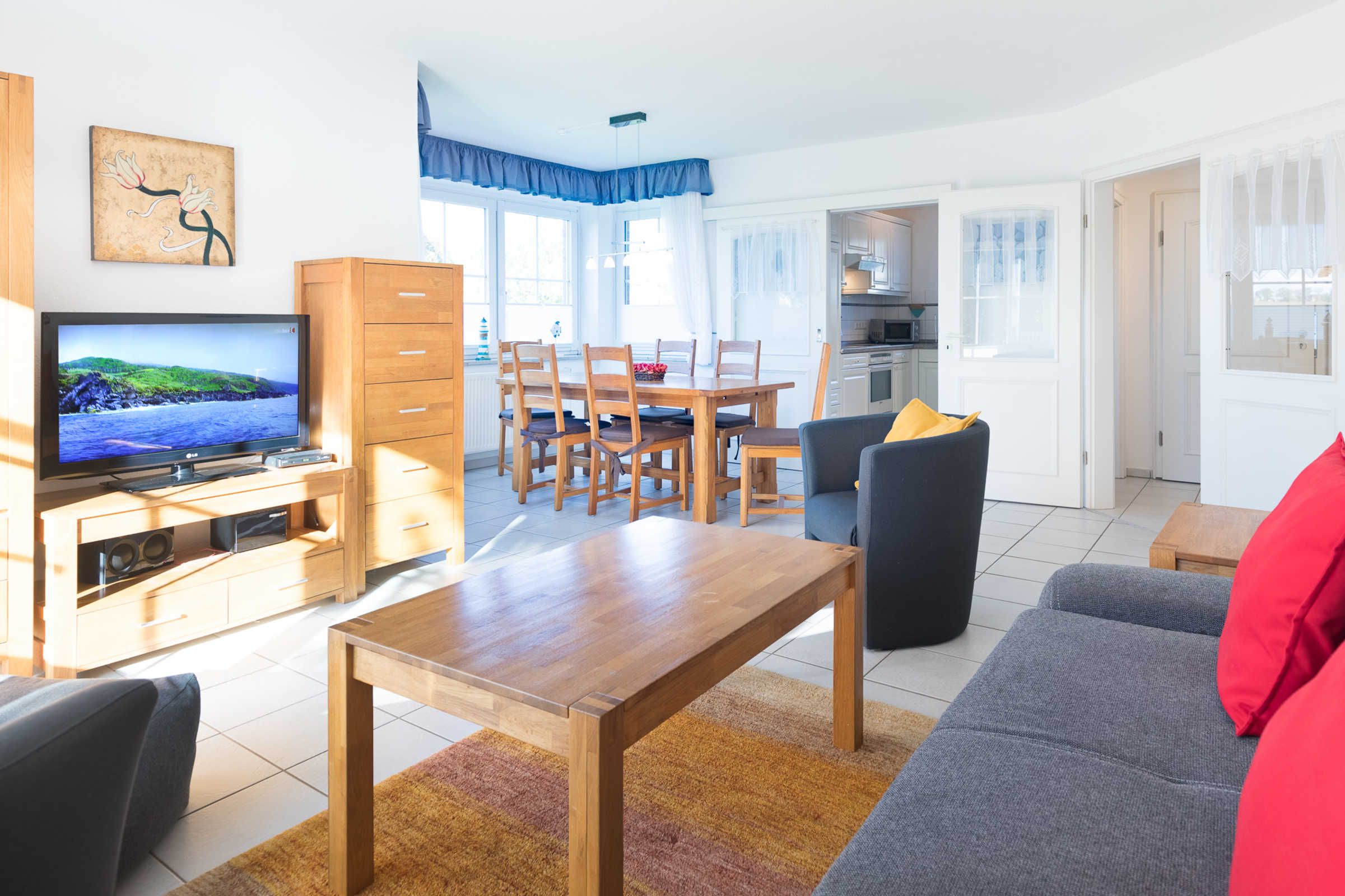 Der ca. 30 qm große Wohn- und Essbereich ist komfortabel möbliert.