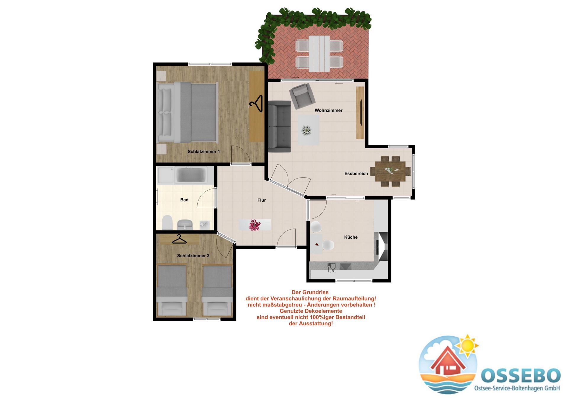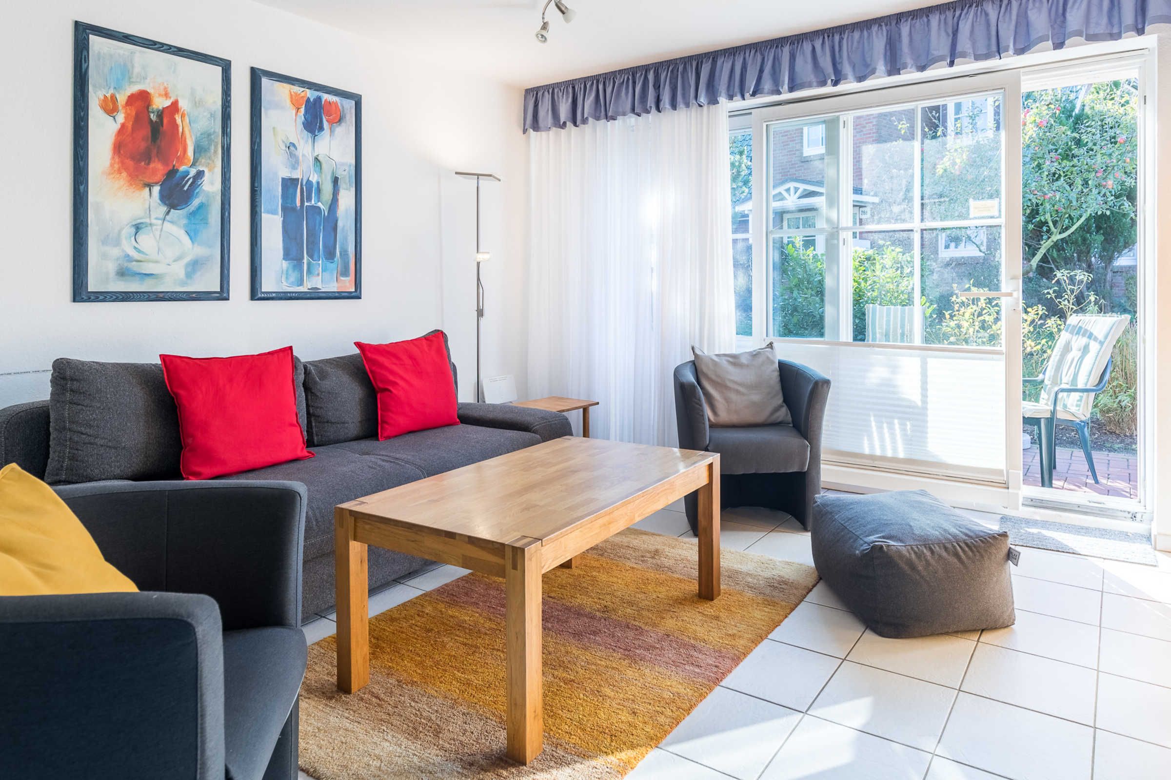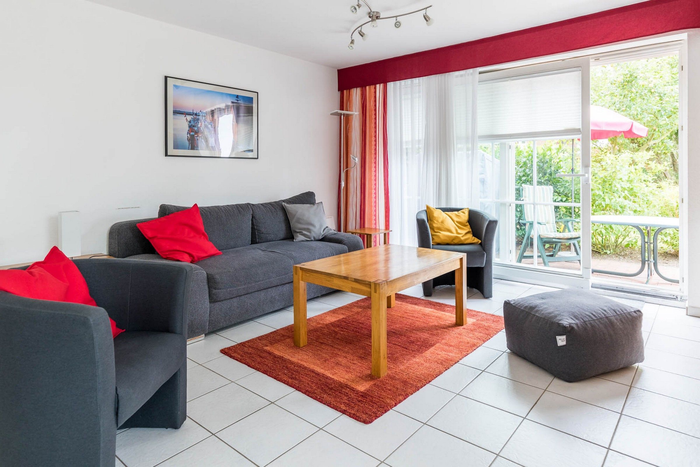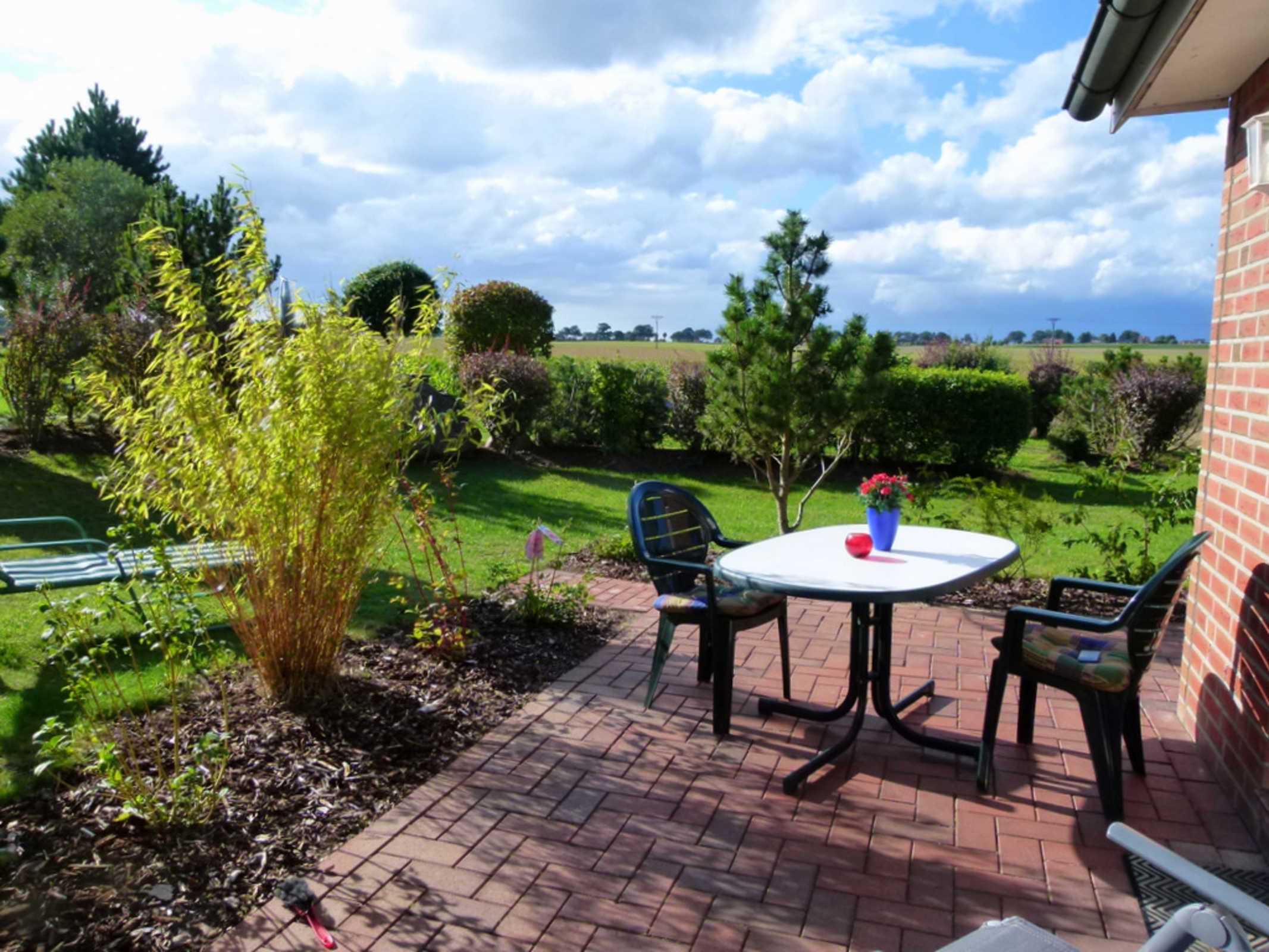 Auf der großen möblierten Südwest-Terrasse oder dem Garten können Sie im eigenen Strandkorb vom Morgen bis zum Sonnenuntergang die Sonne genießen.