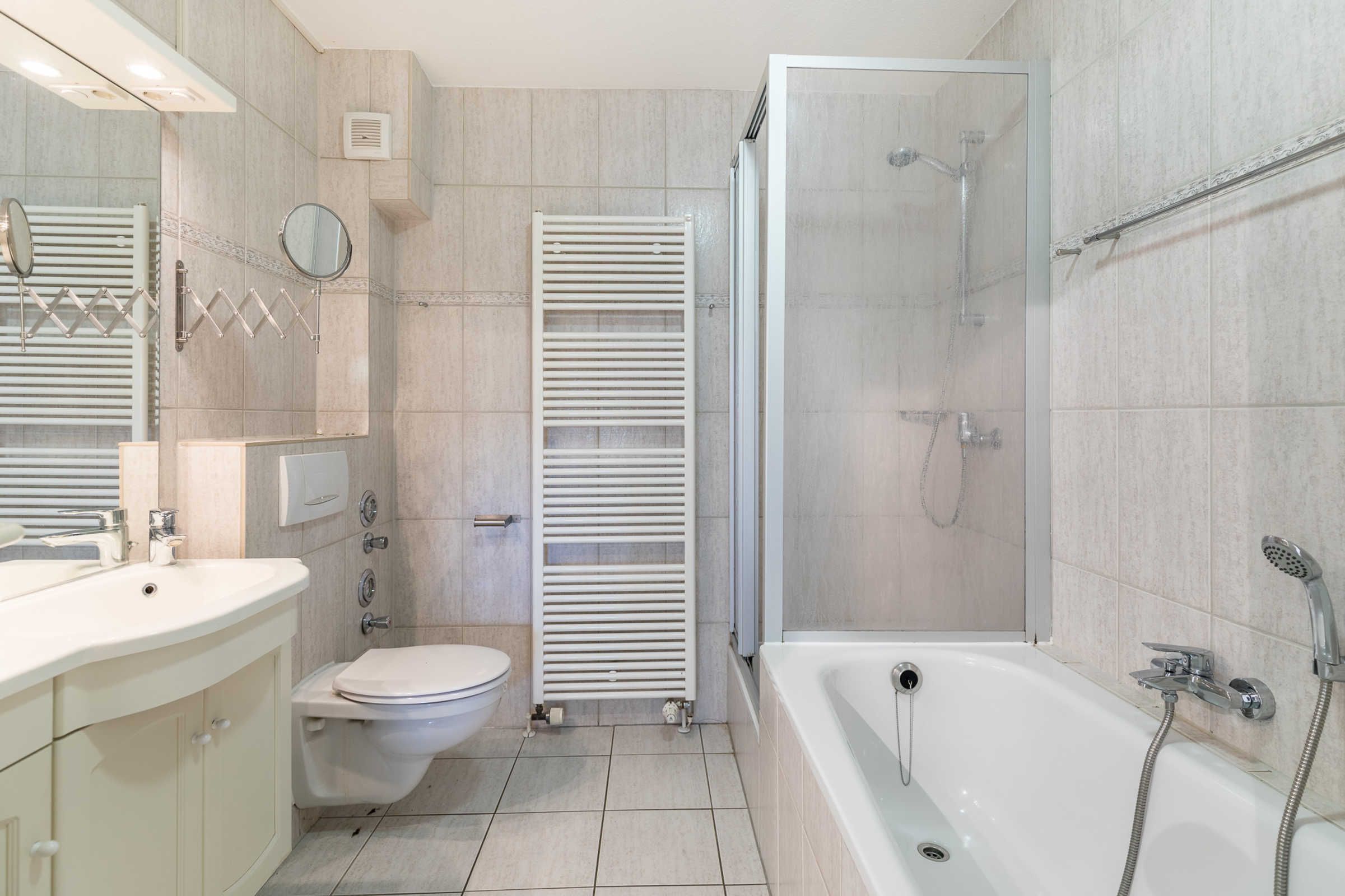 Die Wohnung verfügt über ein geräumiges, 6 qm großes, Vollbad mit WC, Dusche und einer großen Badewanne.