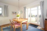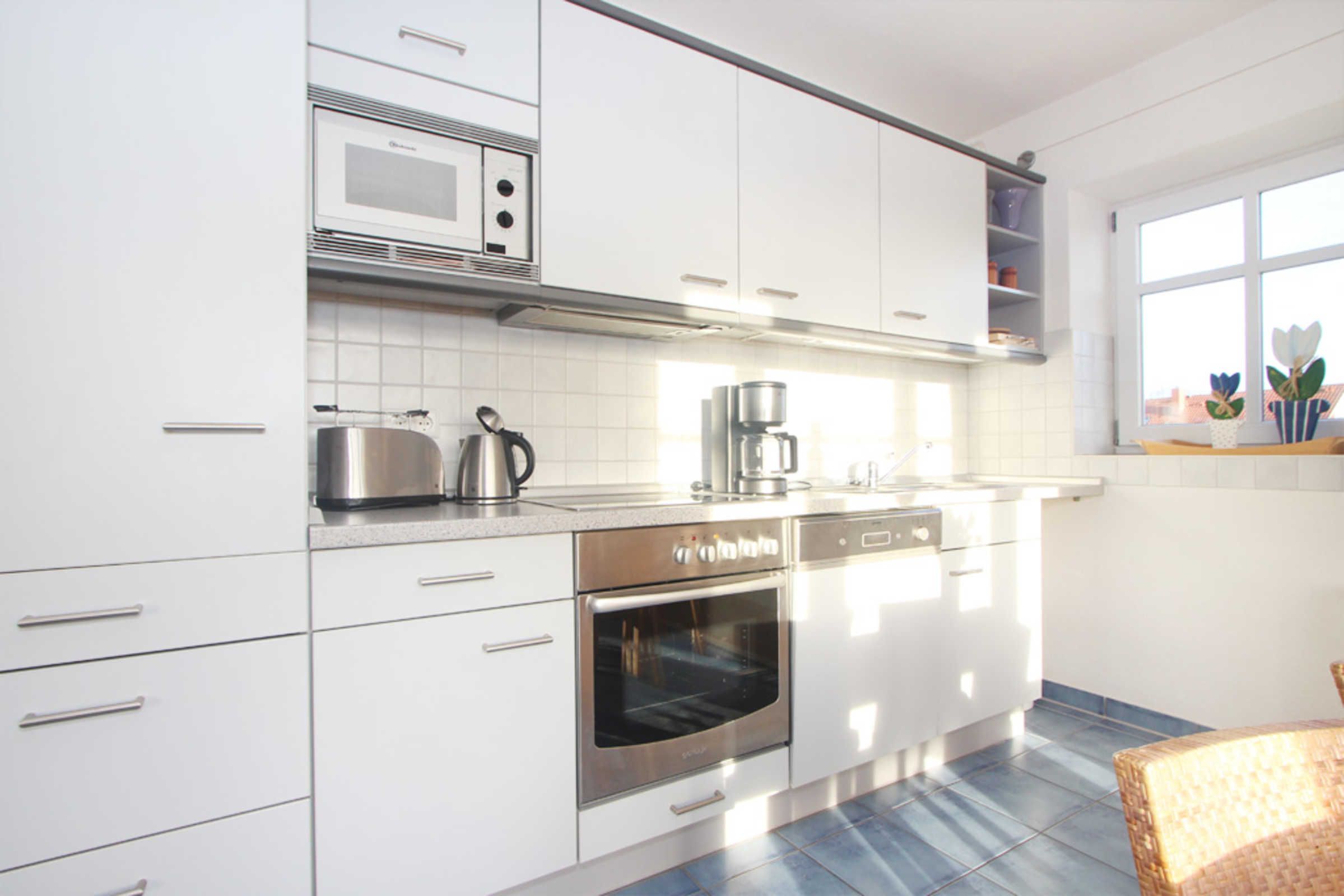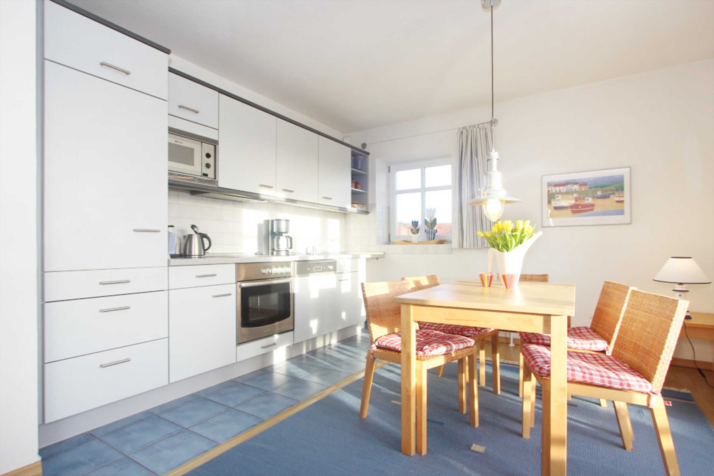 In der ersten Ebene befindet sich der gemütliche Wohnbereich mit SAT-TV (Flatscreen) und offener moderner Küchenzeile, welche mit einem Herd, Cerankochfeld, Mikrowelle, Kaffeemaschine und Kühlschrank ausgestattet ist. Ebenso finden Sie hier einen schönen Essbereich mit ausreichend Platz.