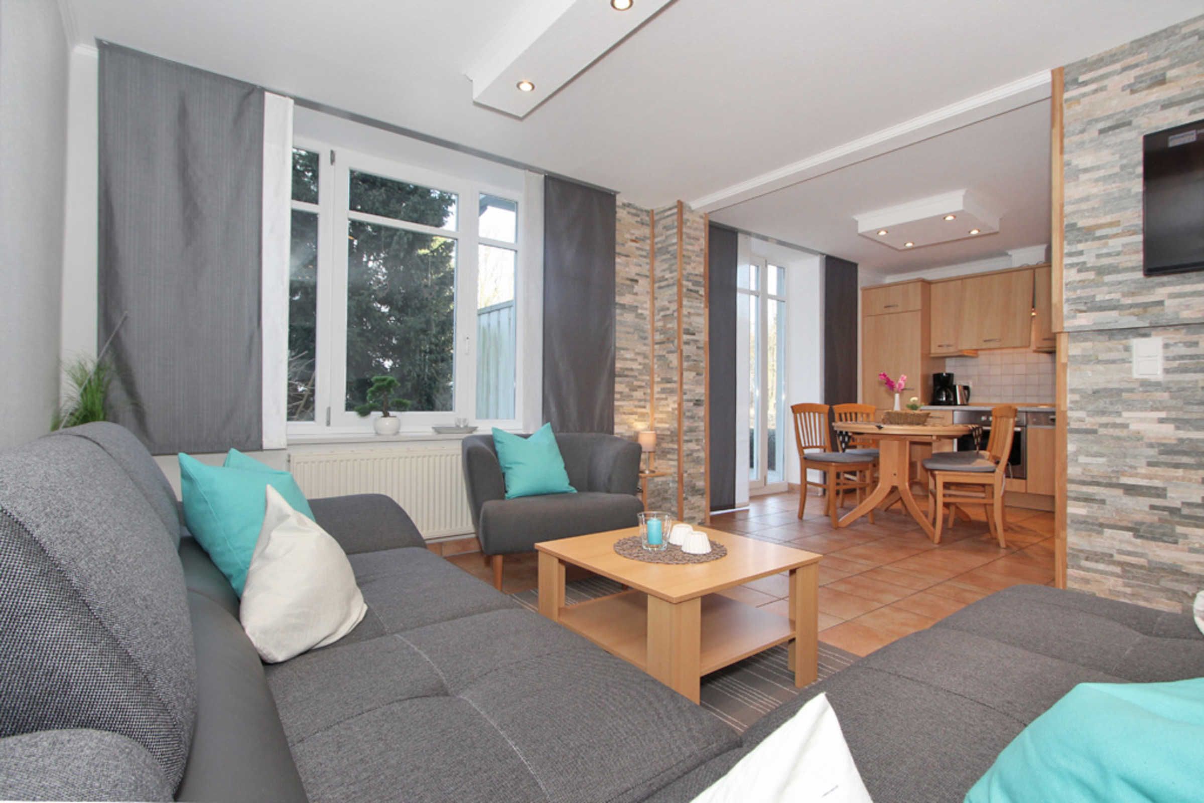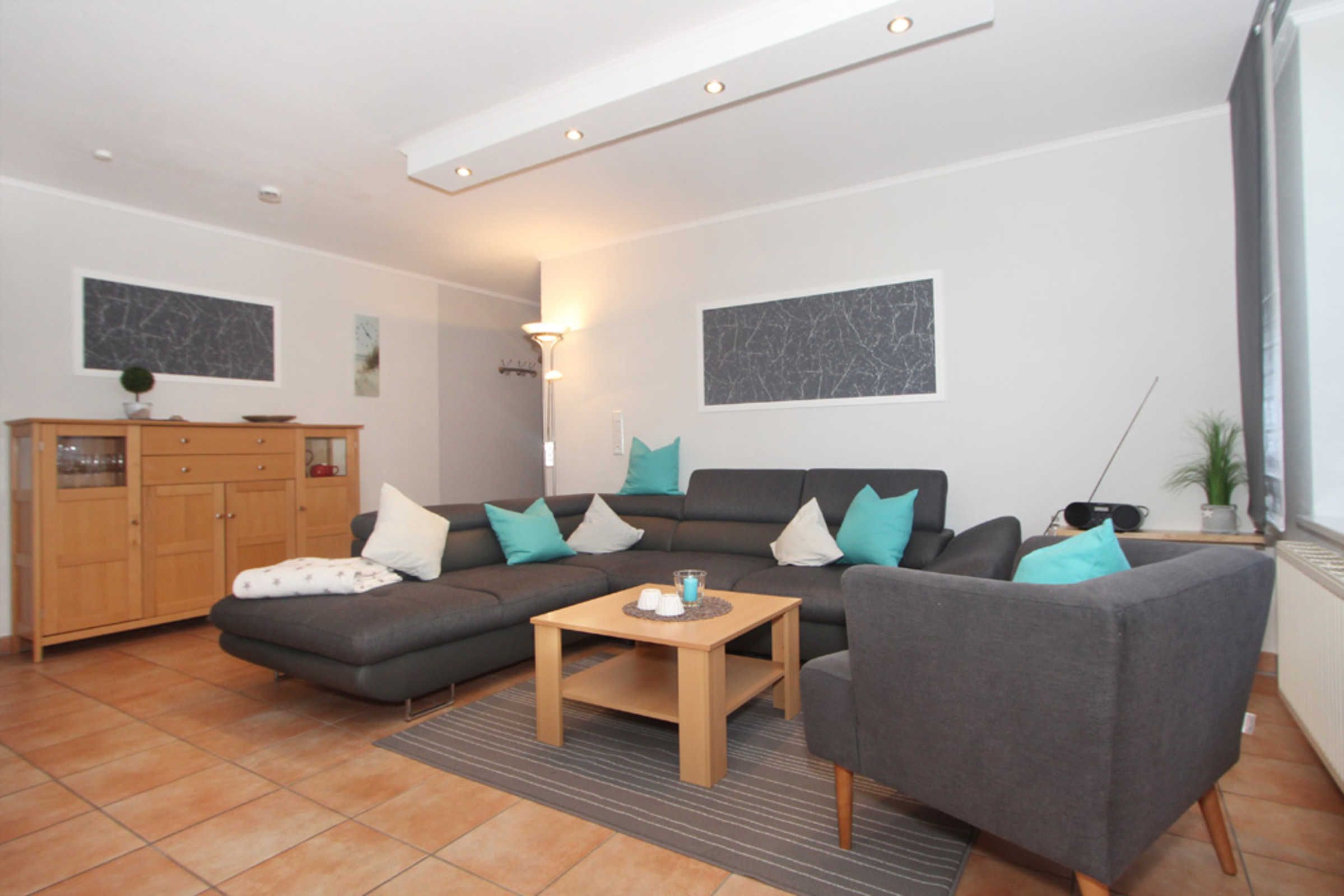 In dieser 70qm großen 3-Zimmer-Wohnung im Erdgeschoss können Familien bis 5 Gäste + 1 Kleinkind einen tollen Urlaub verbringen.