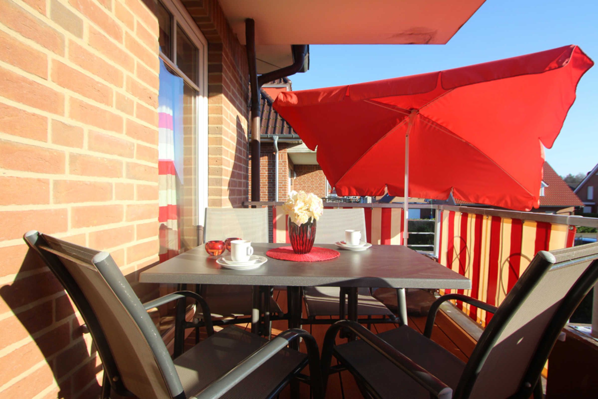 Der möblierte West-Balkon lädt zum Entspannen ein.