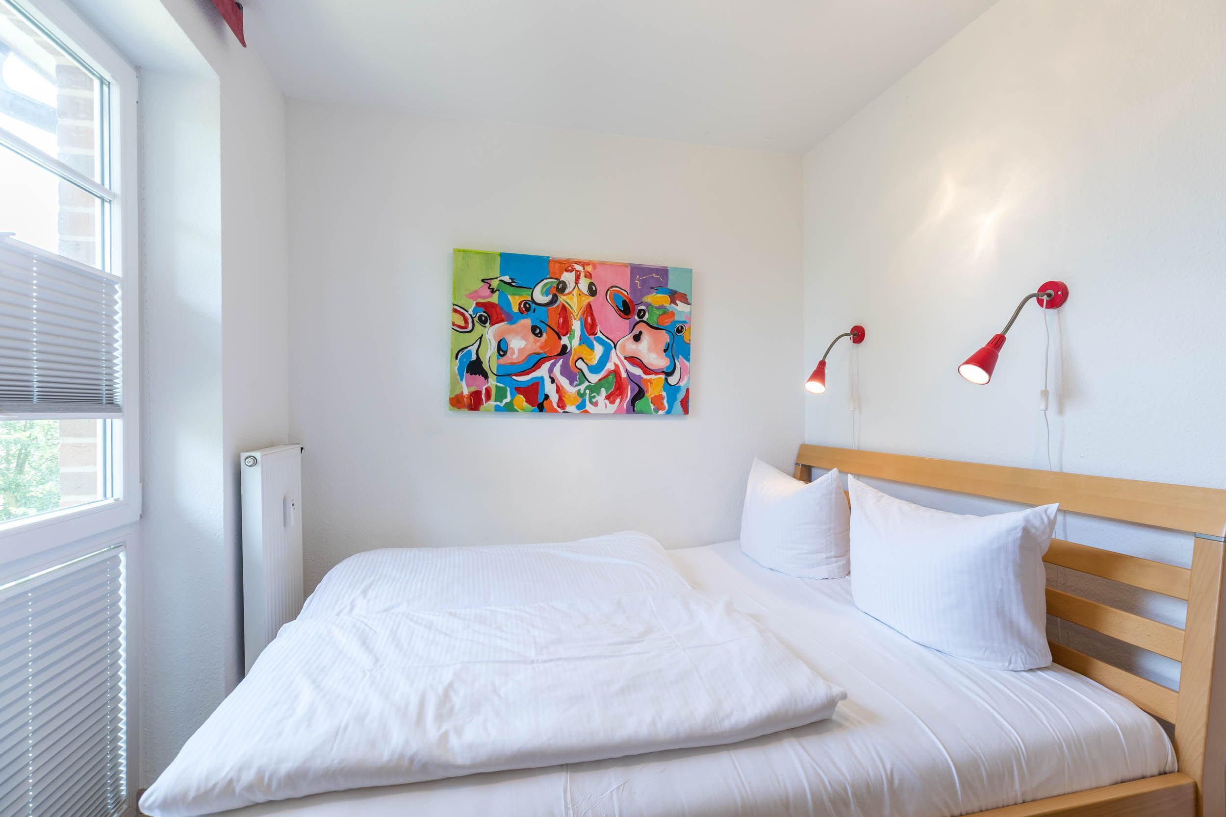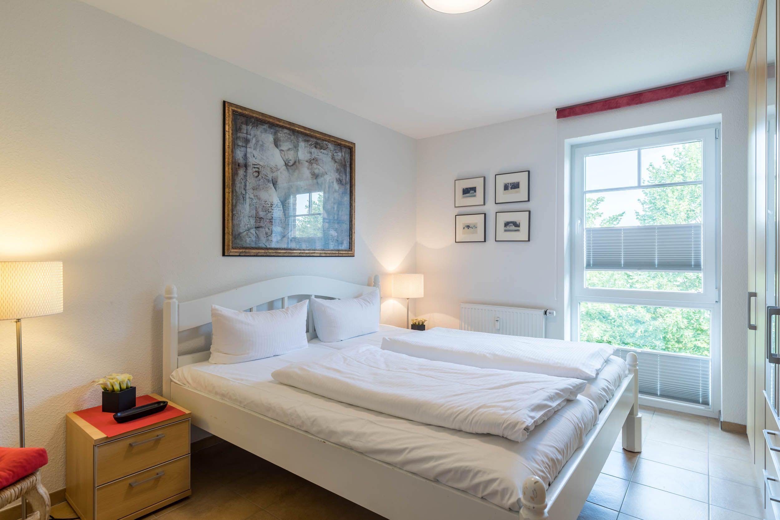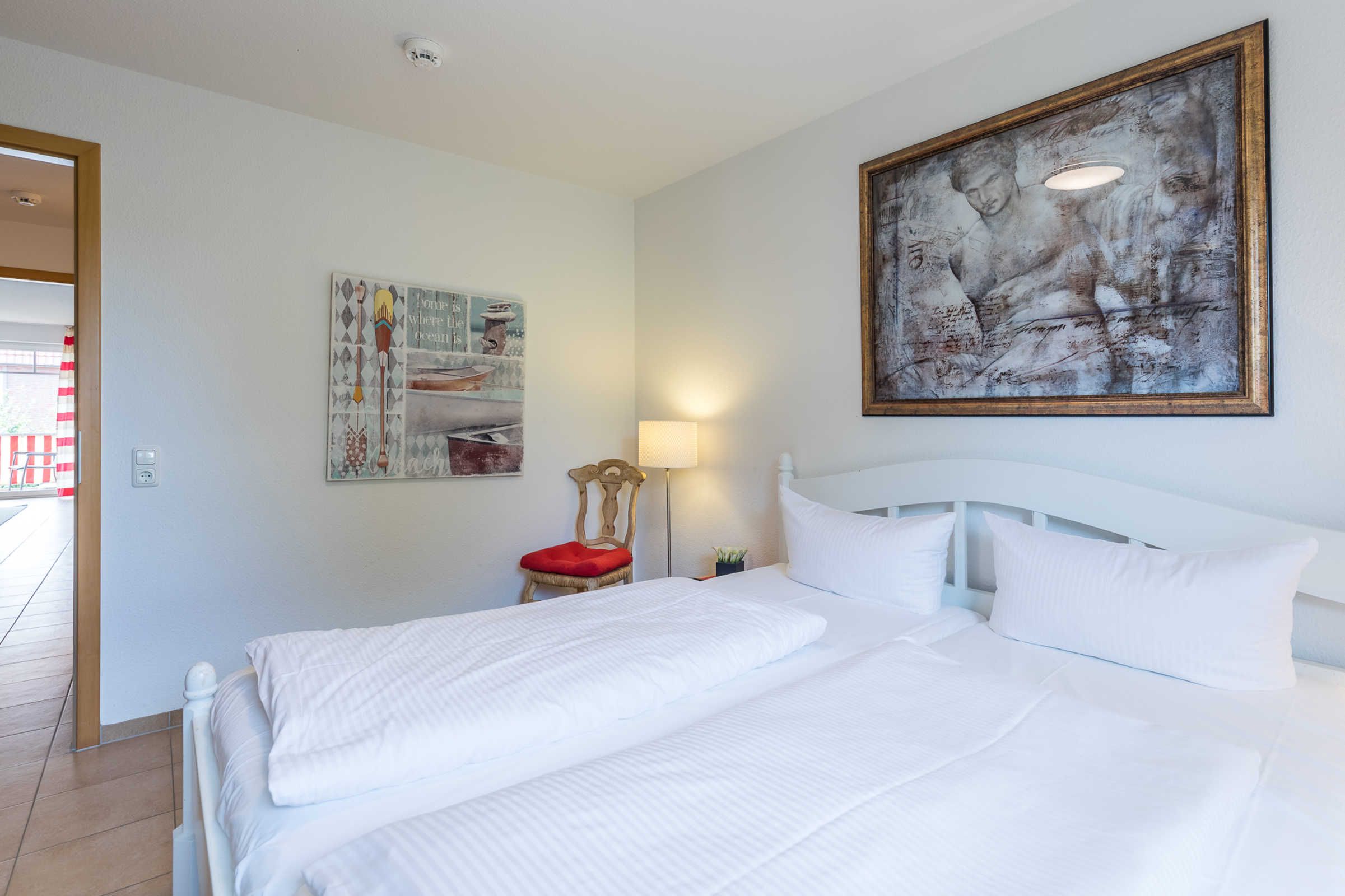 Ein Schlafzimmer bietet ein Doppelbett (200x200cm) einen großzügigen Kleiderschrank. Im Gästezimmer finden Sie ebenfalls ein Doppelbett (160x200cm), eine Kommode sowie einen zweiten SAT-TV.