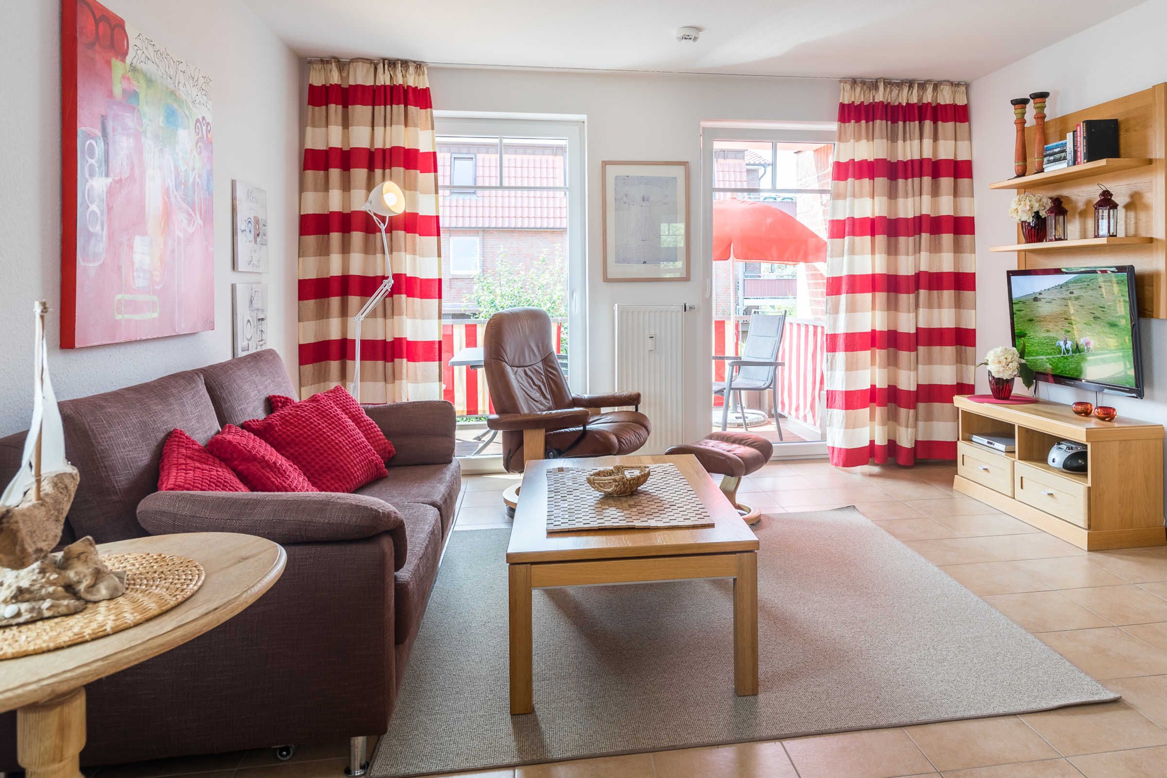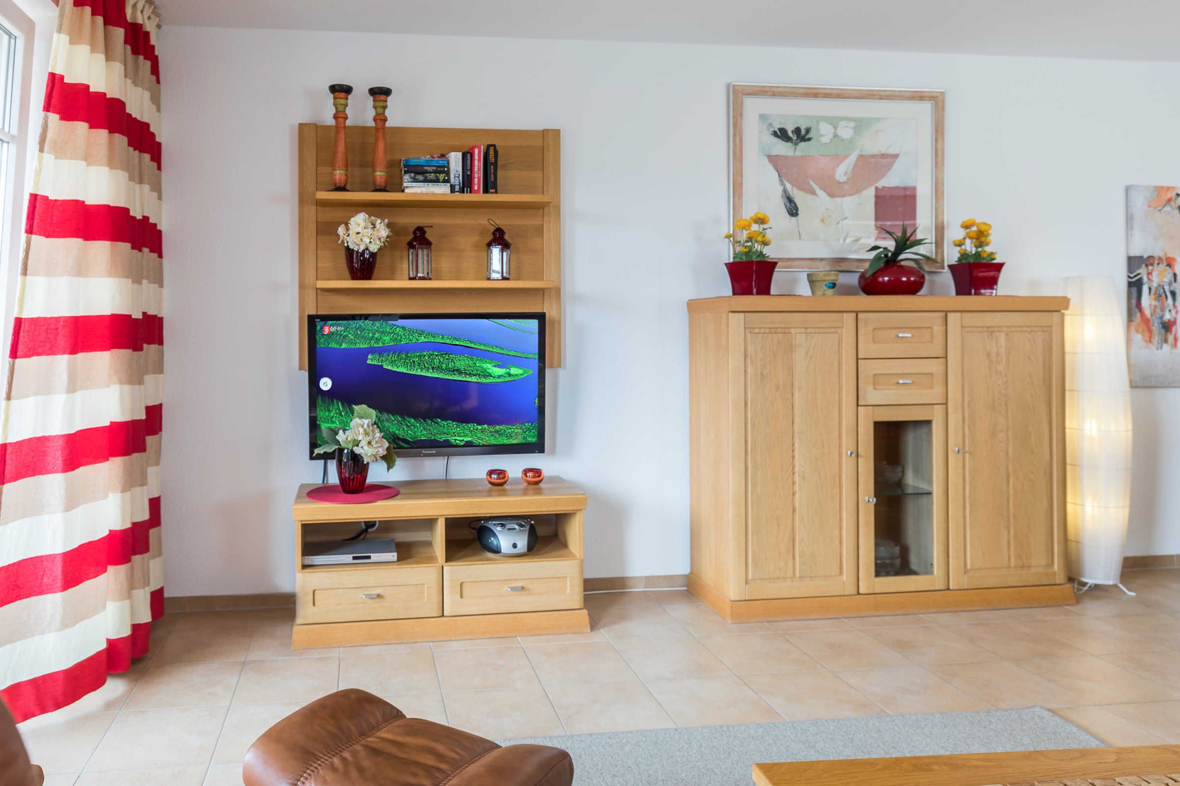 Der großzügige Wohnbereich mit direktem Balkonzugang bietet Ihnen hohen Komfort. Flatscreen-TV, DVD-Player und Radio sorgen für Ihre Multimediaunterhaltung.
