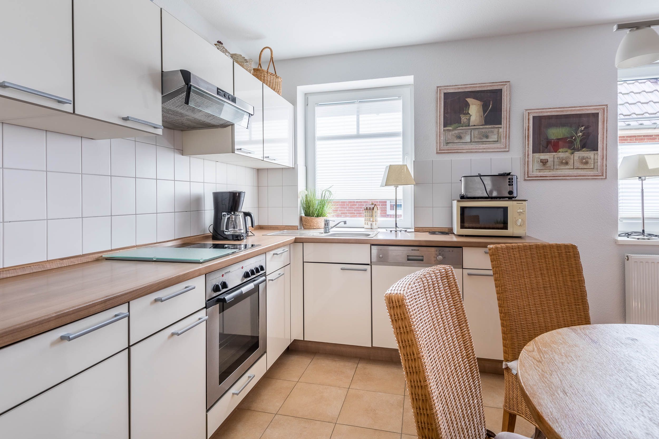 Die offene, moderne Küchenzeile bietet alles Nötige für eine sorgenfreie Selbstverpflegung. Geschirrspüler, Mikrowelle, Kühlschrank mit Gefrierfach, Herd mit Cerankochfeld, Backofen, viele nützliche Elektrokleingeräte uvm. finden Sie hier.