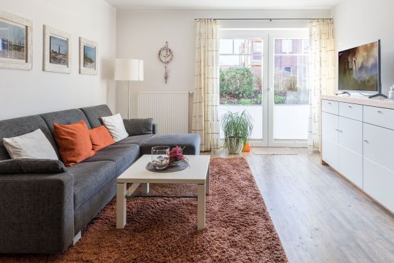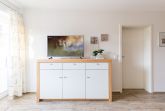 Mittelpunkt dieser barrierefreien Unterkunft bildet der großzügige & helle Wohnbereich mit einem bequemen Sofa. Flatscreen-TV, Stereoanlage sowie diverse Gesellschaftsspiele sorgen im Wohnbereich für Unterhaltung.