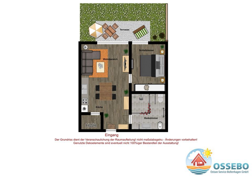In dieser modernen 2-Zimmerwohnung im Erdgeschoss können 2 Gäste auf rund 60qm Wohnfläche einen herrlichen Urlaub im schönen Ostseebad Boltenhagen verbringen.