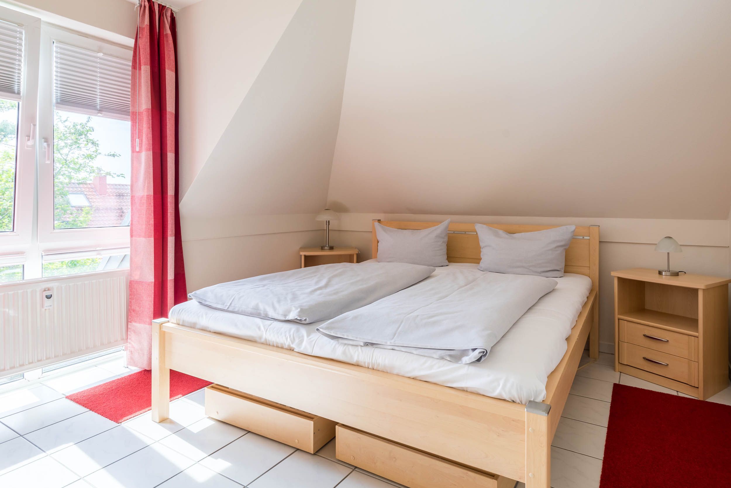 Das Schlafzimmer ist mit einem komfortablen Doppelbett (180x200m), Kleiderschrank und TV eingerichtet. Die Fenster sind mit Fliegenschutz ausgestattet.