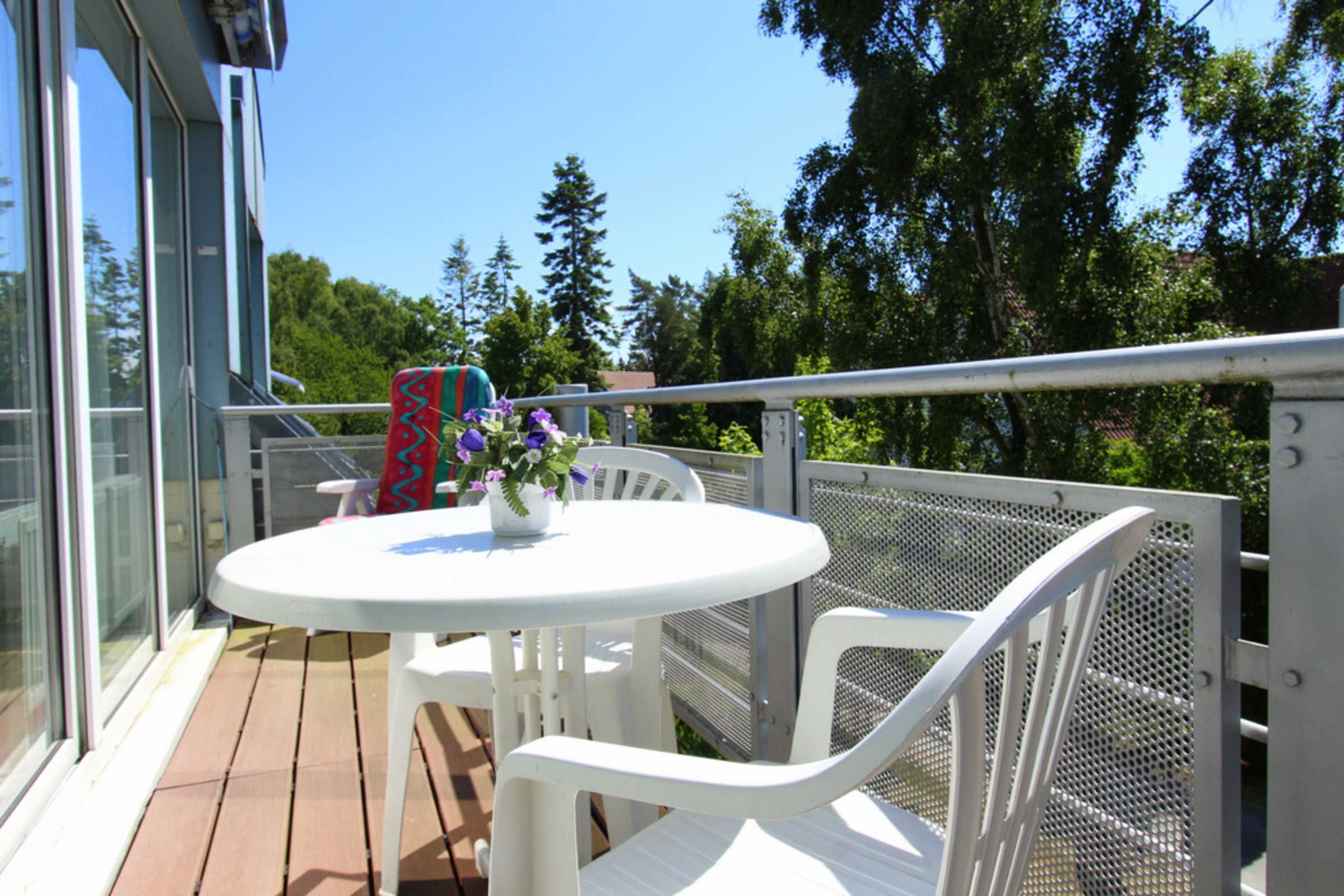 Auf dem möblierten Südwest-Balkon können Sie gemütlich die Ostseeluft genießen.